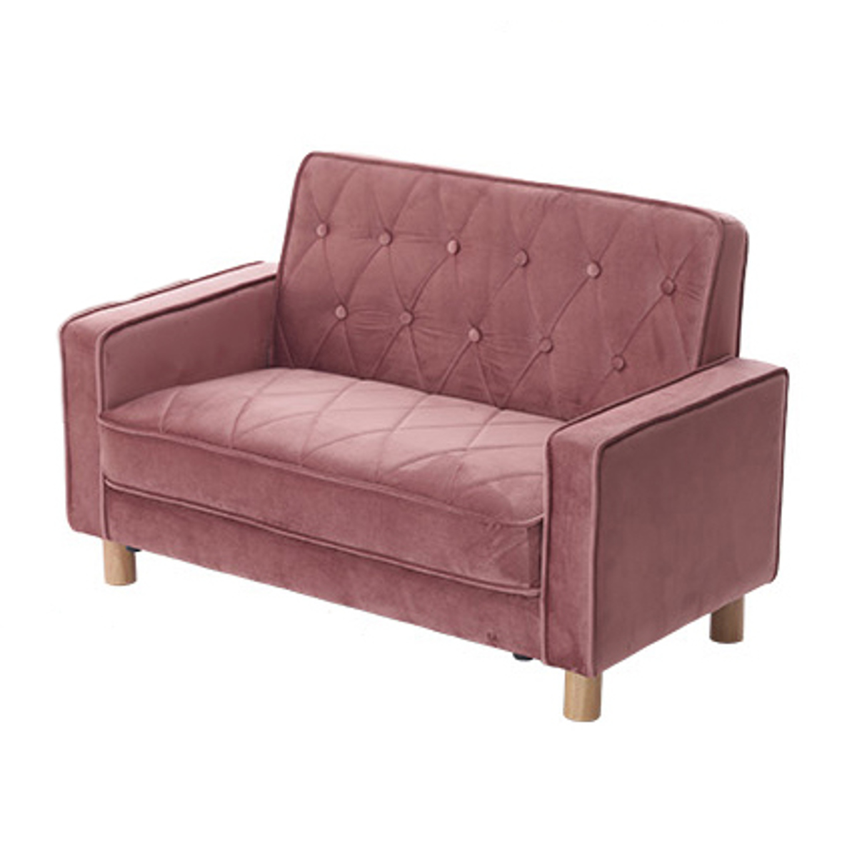 ソファ 1人掛け 1.5人掛け 幅114cm コンパクト デザインソファ ( ソファー リビングソファ 省スペース 一人用 脚 取り外し ローソファ 肘掛け 簡単組立 キルティング ベロア おしゃれ ワンルーム ) 【ピンク】