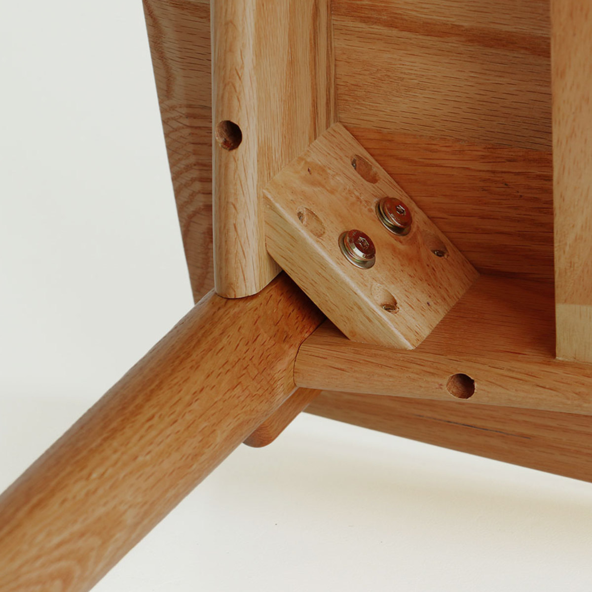 脚には余分な桟が通っていないので、4面どこからでも椅子を合わせることができます。美しさと実用性を両立させた細部への配慮が、Herit.シリーズならではのこだわりを感じさせます。