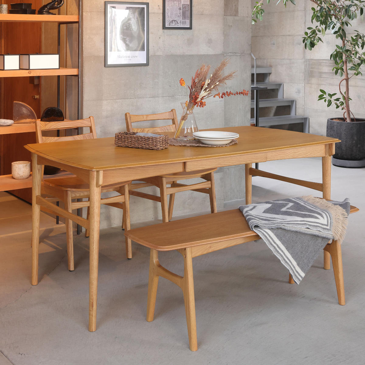 ダイニングテーブル 幅150cm 5~6人用 引出し付 Herit ( テーブル 食卓テーブル 4人用 5人用 6人用 机 木製 天然木 オーク 北欧風 長方形 引き出し 収納付き 簡単組立 ダイニング 食卓 リビング 木製テーブル おしゃれ )