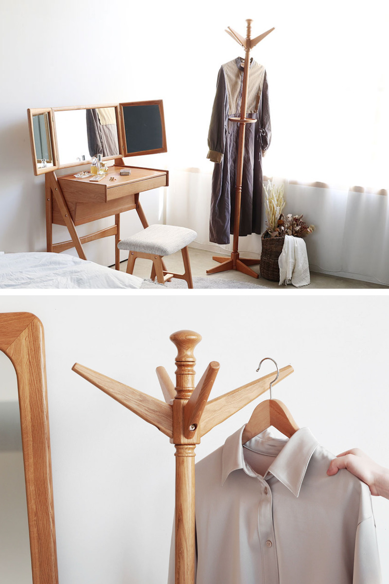 ポールハンガー 木製 高さ165cm 小物棚付 Herit ( コート掛け コートハンガー ポールスタンド 天然木 北欧家具 北欧インテリア トレー付き 収納 ハンガー 洋服掛け ナチュラル おしゃれ 北欧 ハンガースタンド 家具 インテリア )