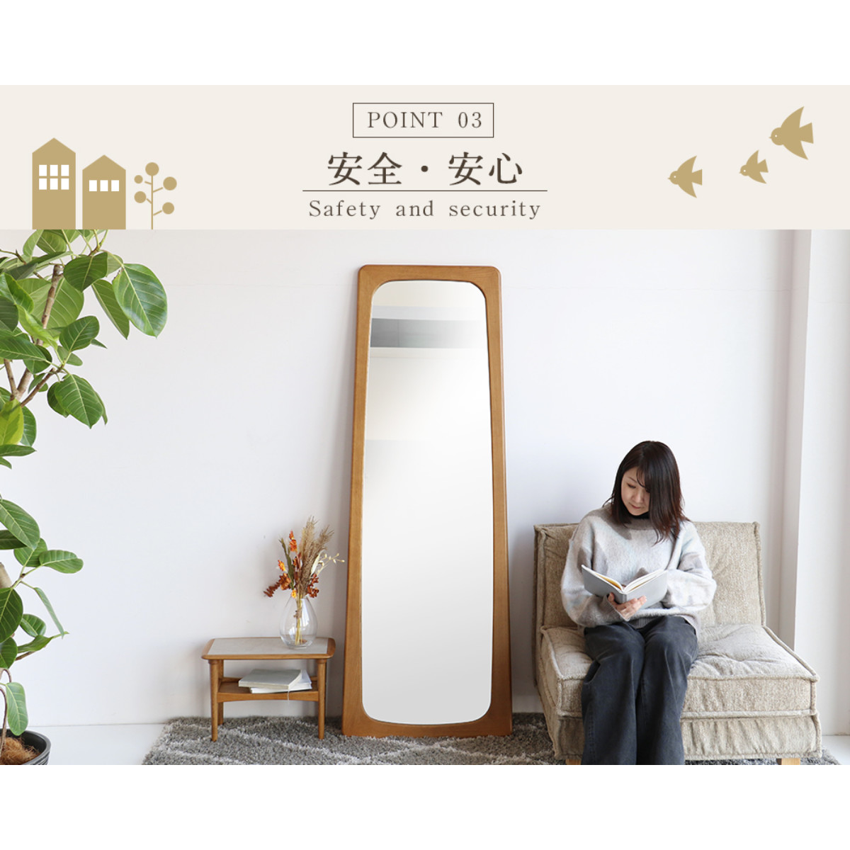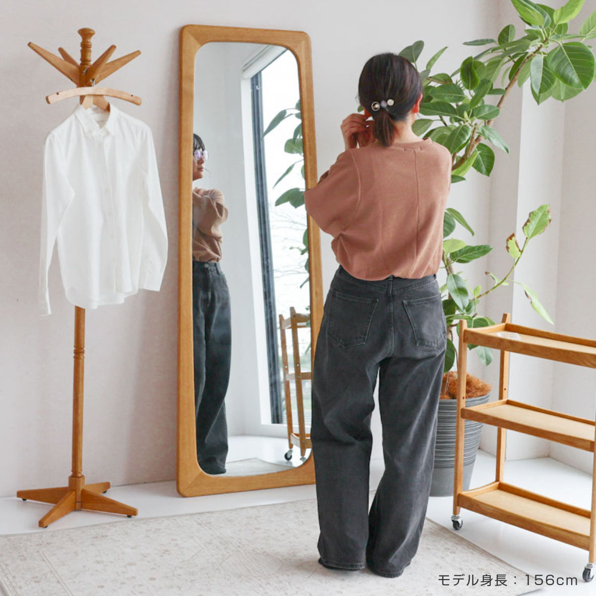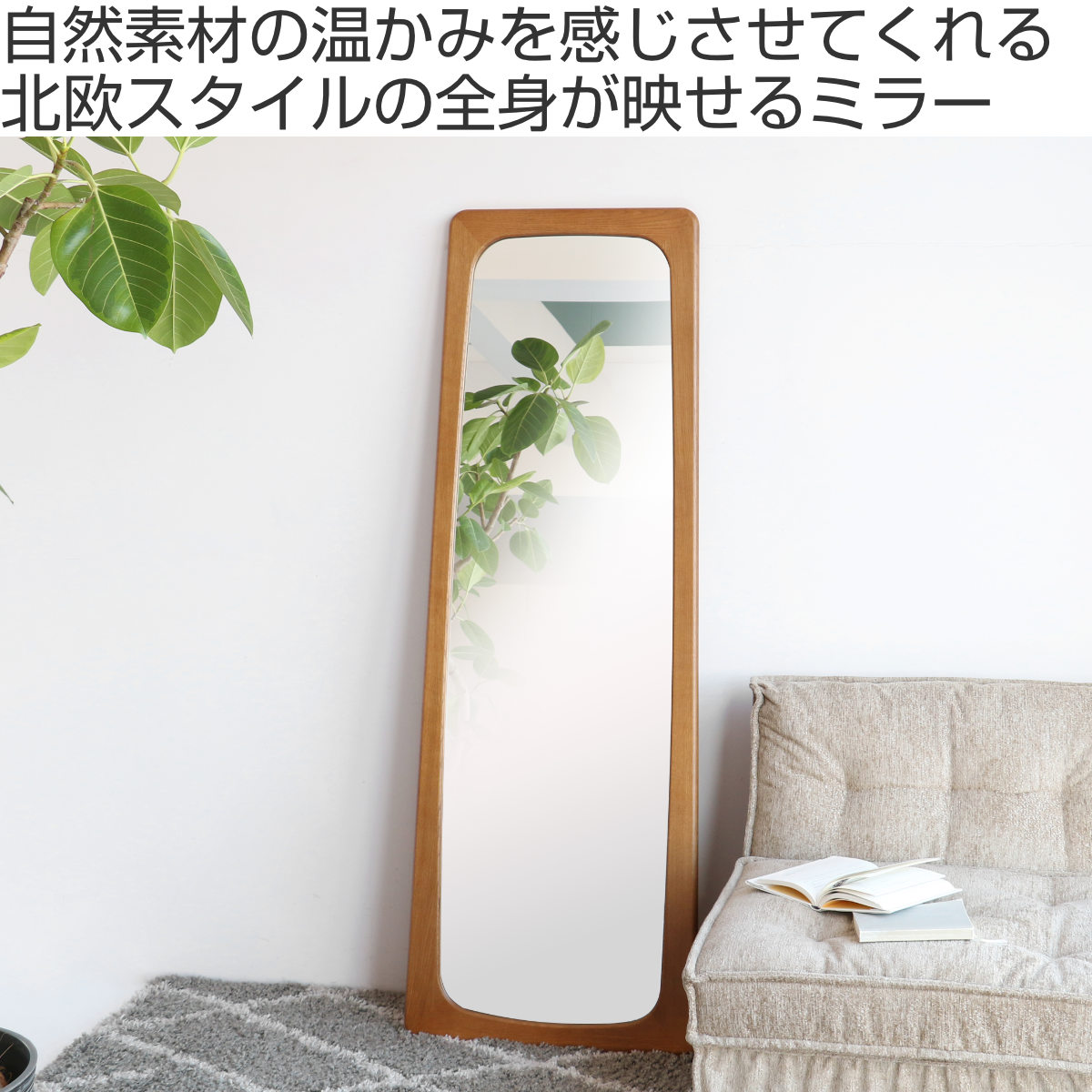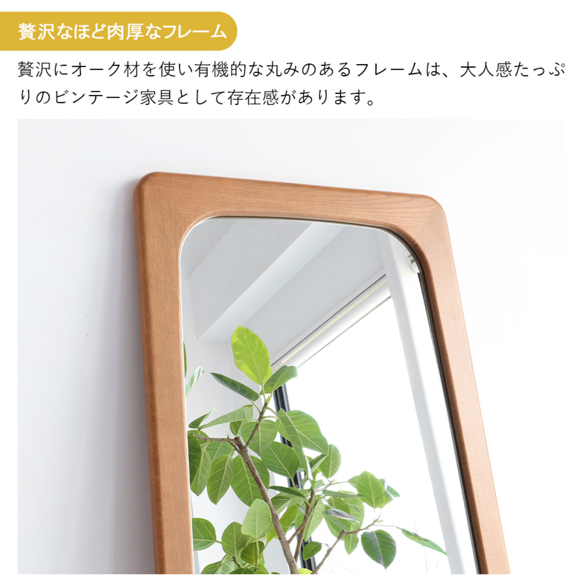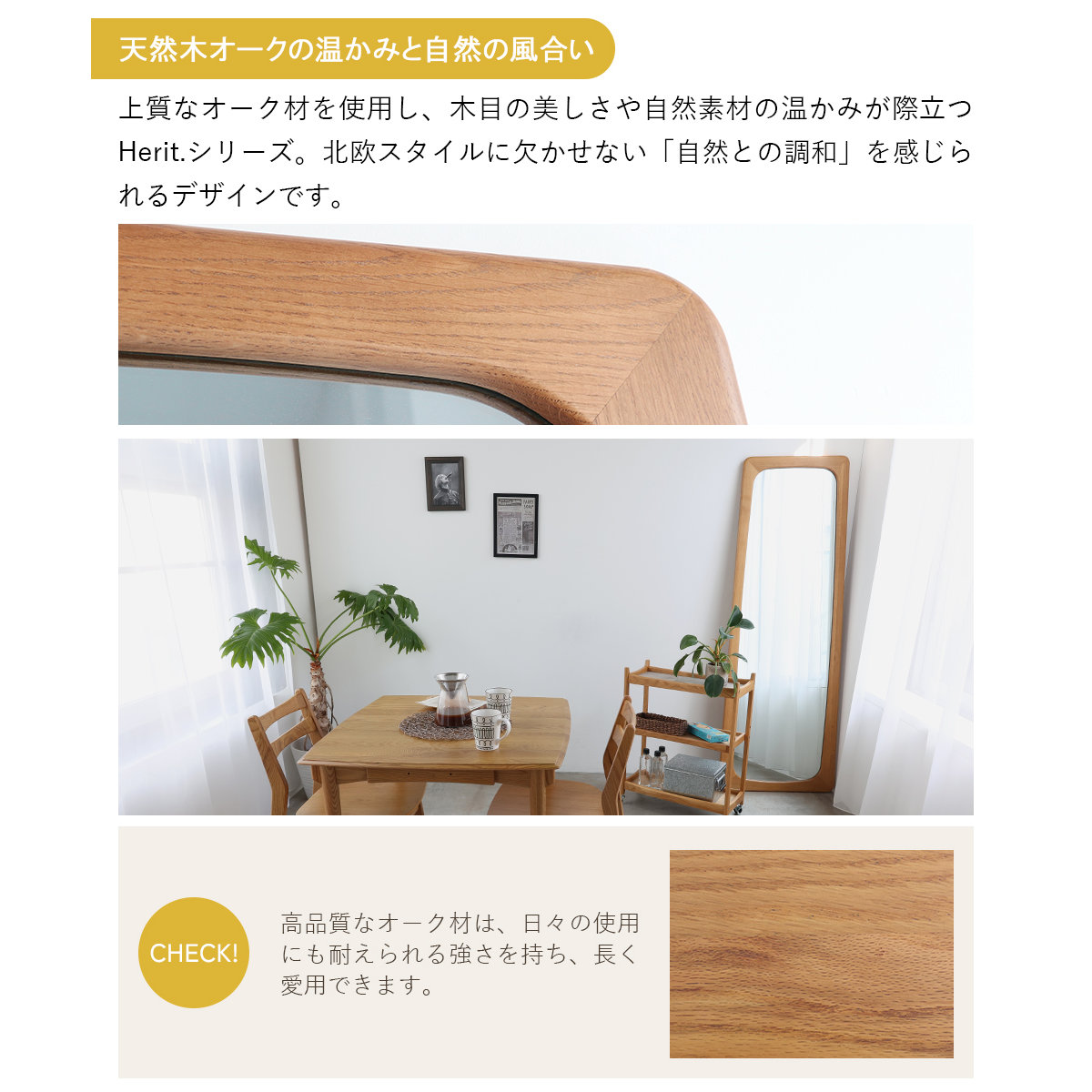 ミラー 全身 姿見鏡 幅62×高さ172cm 木製フレーム 立てかけタイプ Herit ( 鏡 姿見 全身鏡 天然木 北欧インテリア 完成品 北欧 ナチュラル オーク 無垢材 飛散防止 転倒防止 インテリア )