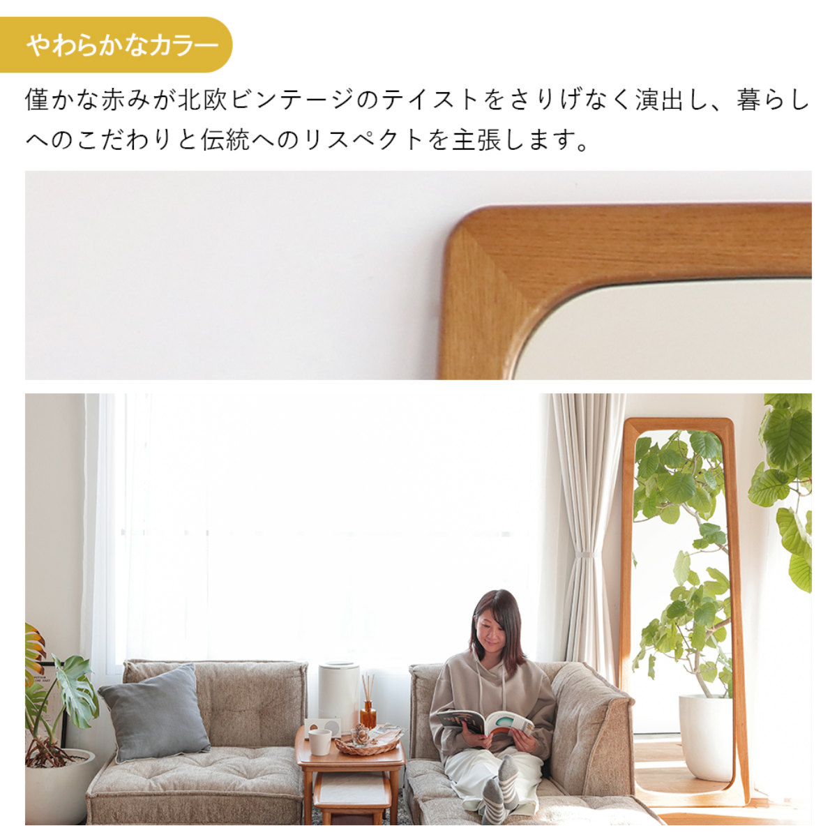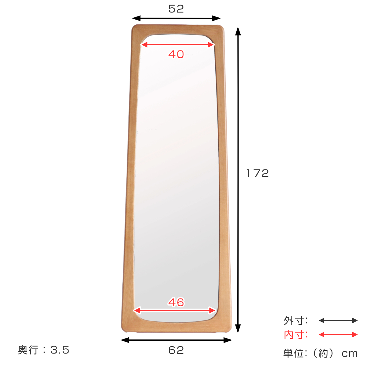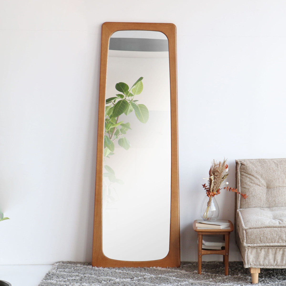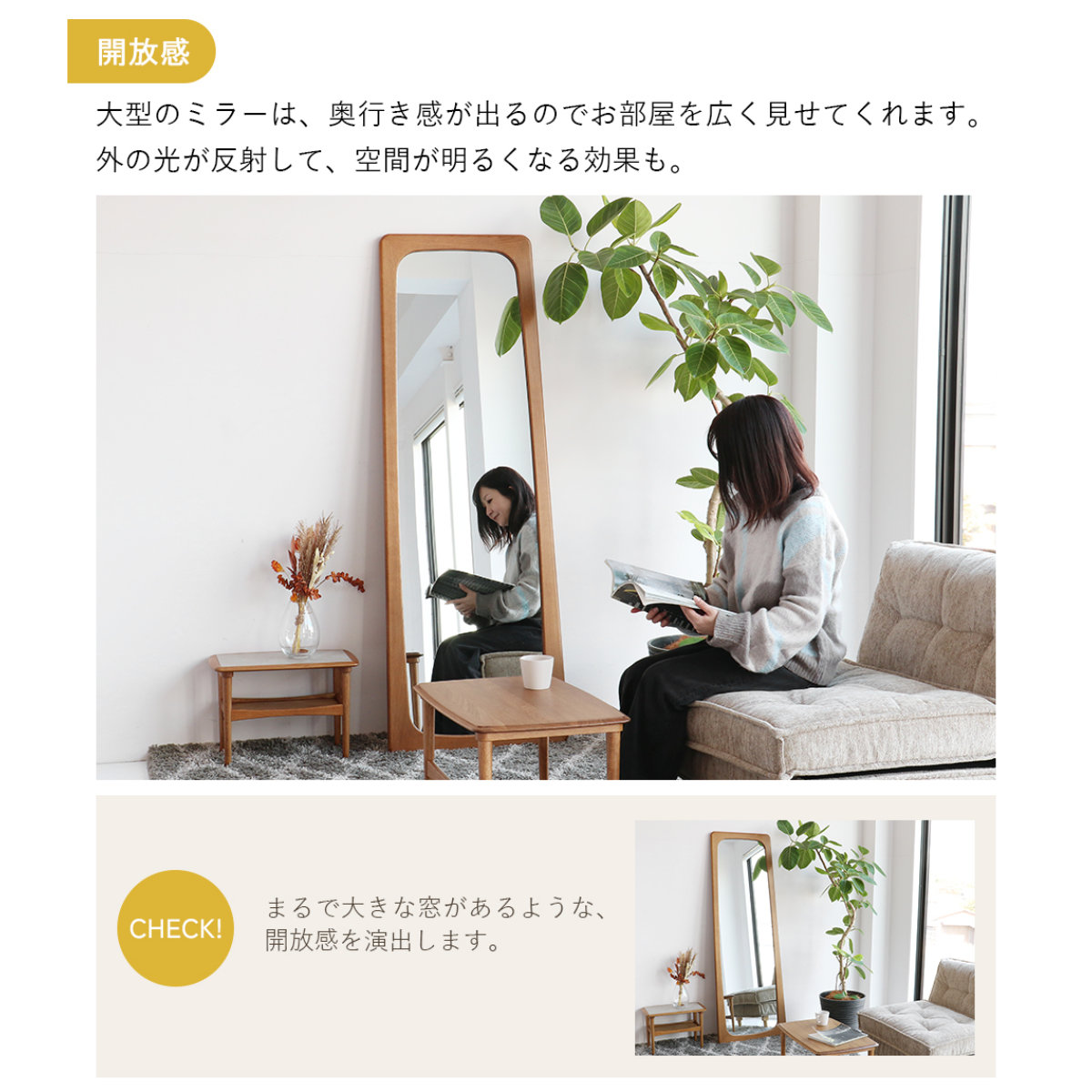 ミラー 全身 姿見鏡 幅62×高さ172cm 木製フレーム 立てかけタイプ Herit ( 鏡 姿見 全身鏡 天然木 北欧インテリア 完成品 北欧 ナチュラル オーク 無垢材 飛散防止 転倒防止 インテリア )