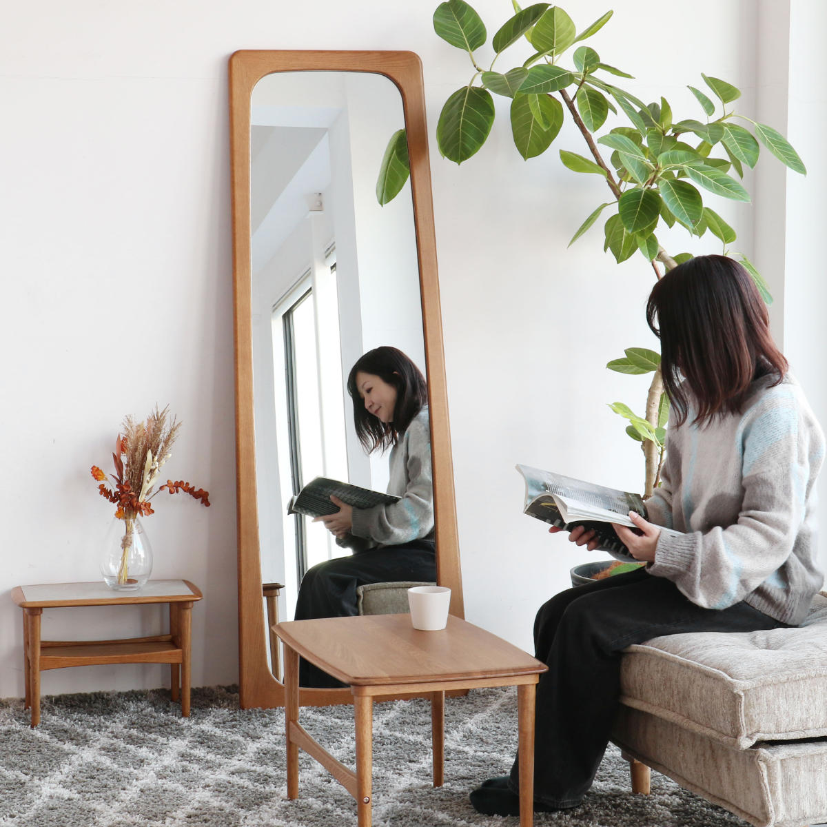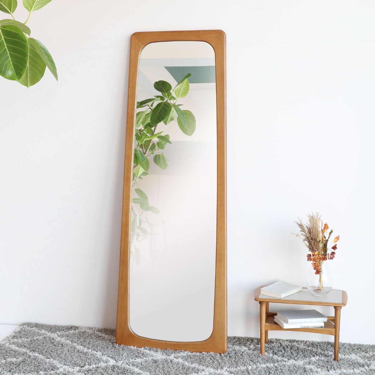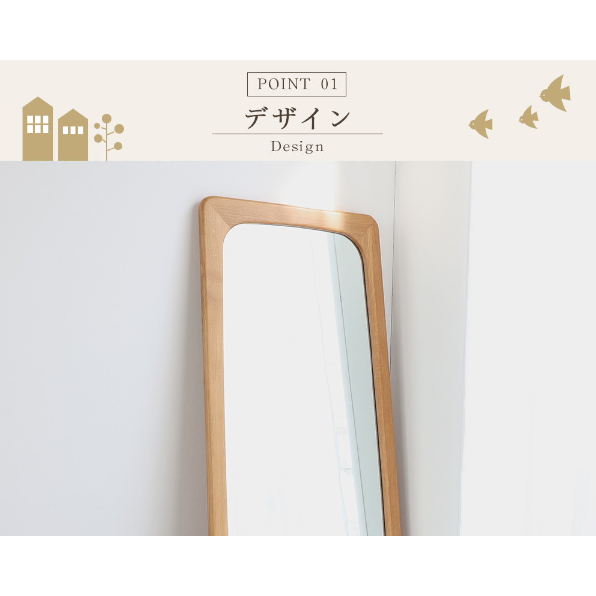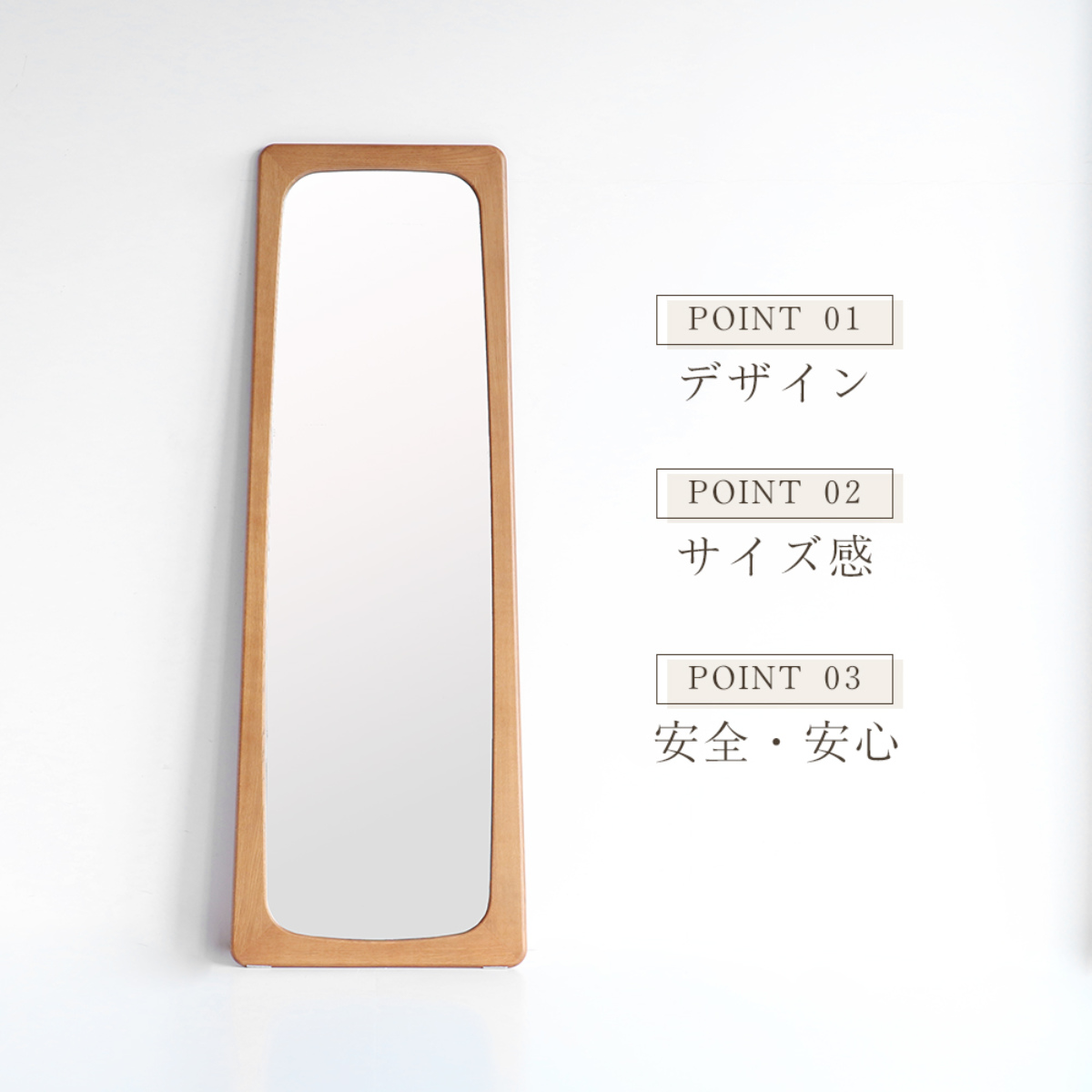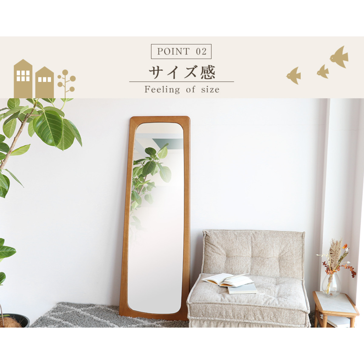 ミラー 全身 姿見鏡 幅62×高さ172cm 木製フレーム 立てかけタイプ Herit ( 鏡 姿見 全身鏡 天然木 北欧インテリア 完成品 北欧 ナチュラル オーク 無垢材 飛散防止 転倒防止 インテリア )