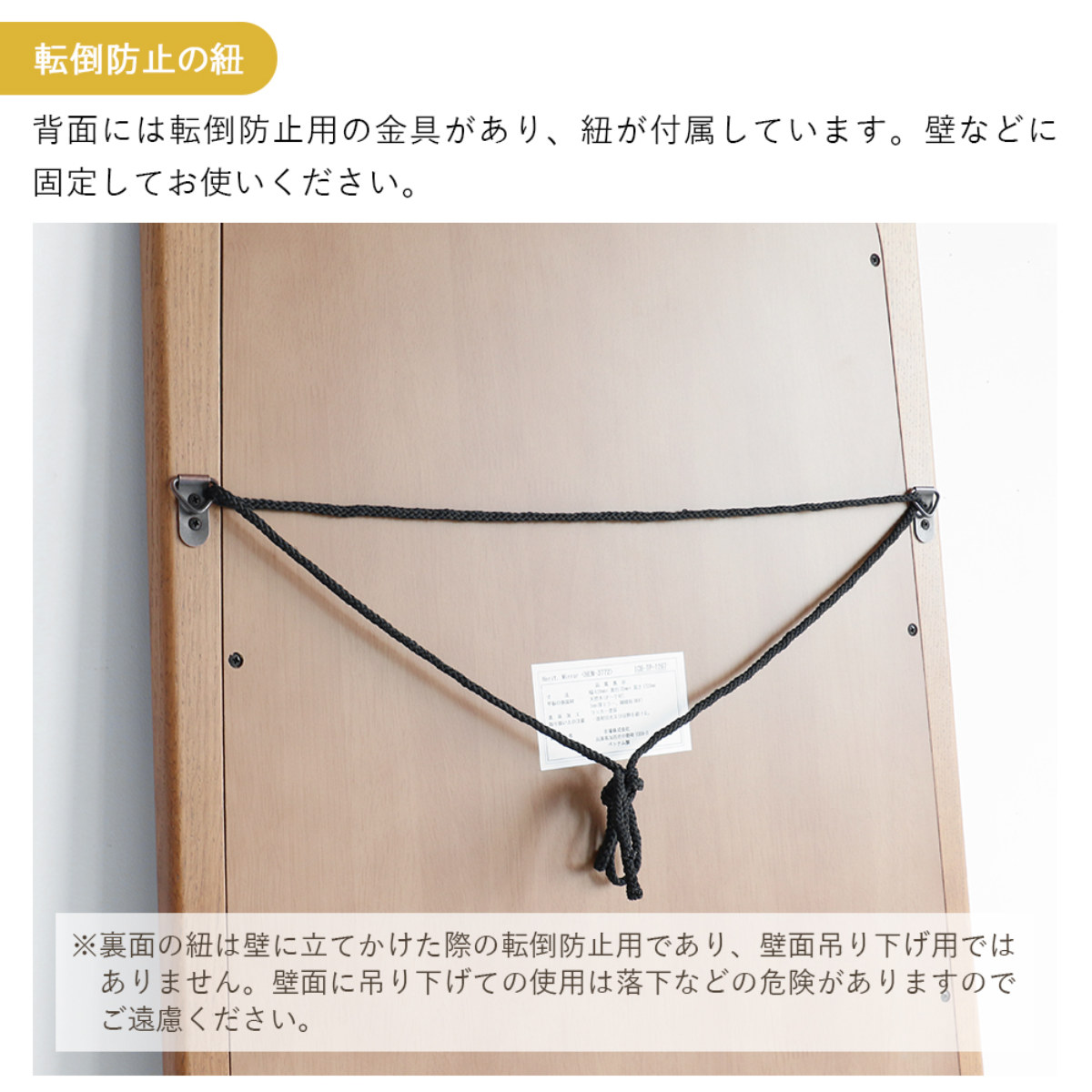 ※紐は壁に立てかけた際の転倒防止用であり、壁面吊り下げ用ではありません。壁面に吊り下げての使用は落下などの危険がありますのでご遠慮ください。