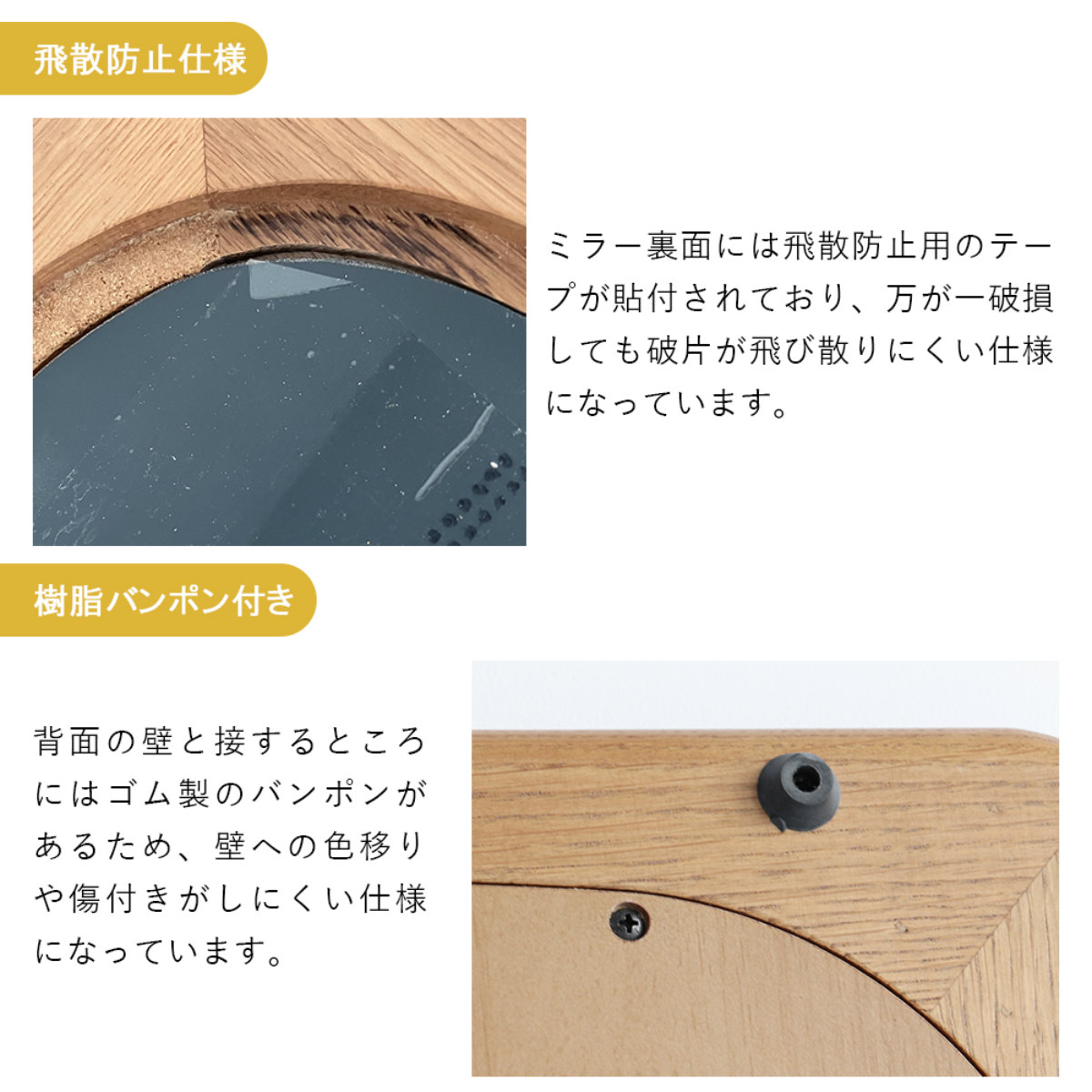| 材質 | フレーム:天然木(オーク材) 5mm厚ミラー、繊維板(MDF) ラッカー塗装 |