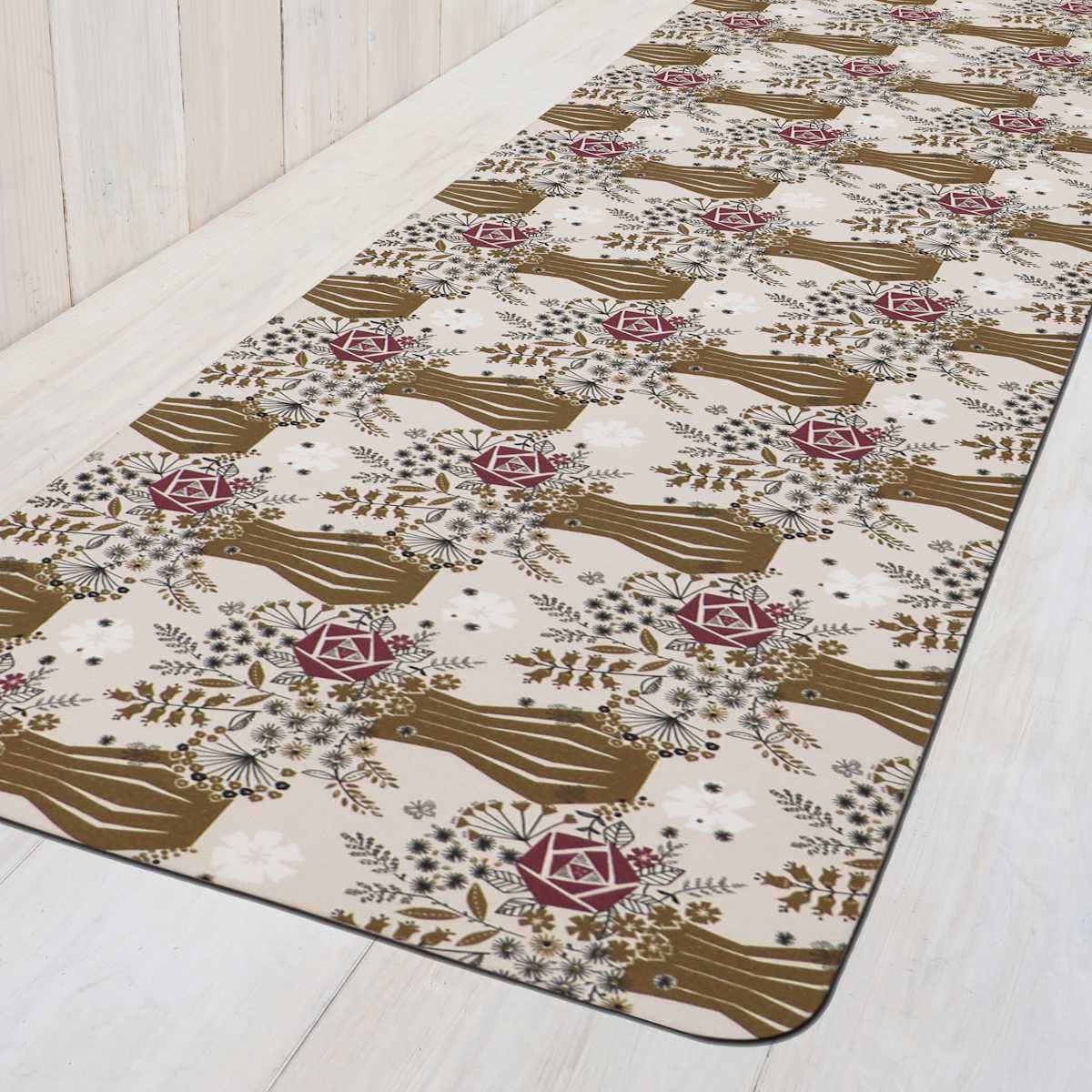 厚みが3.5mmと薄型ですが、程よいクッション性のある踏み心地です。薄型なので、キッチンの扉や引き出しにマットが引っ掛からず、お掃除ロボットもスムーズに乗り上げます。物が落下しても衝撃を吸収し、フローリングを傷や凹みから守ります。
