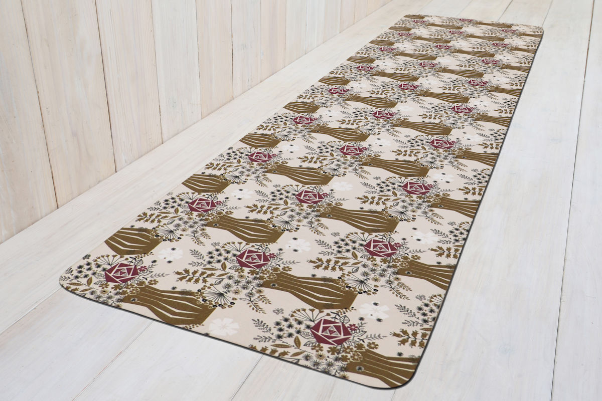 厚みが3.5mmと薄型ですが、程よいクッション性のある踏み心地です。薄型なので、キッチンの扉や引き出しにマットが引っ掛からず、お掃除ロボットもスムーズに乗り上げます。物が落下しても衝撃を吸収し、フローリングを傷や凹みから守ります。
