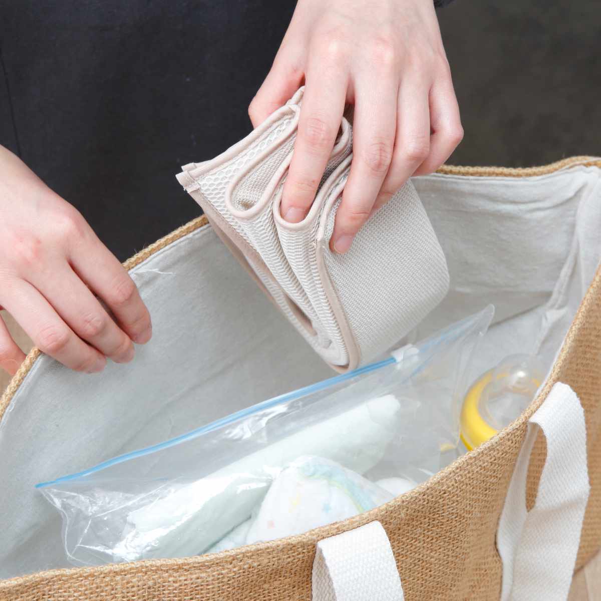 折りたたんで持ち運べるコンパクト設計なので、旅行先や帰省先でも哺乳瓶の乾燥にとても便利です。広げればしっかり水切りでき、使い終わったらサッと畳んでバッグに収納できます。