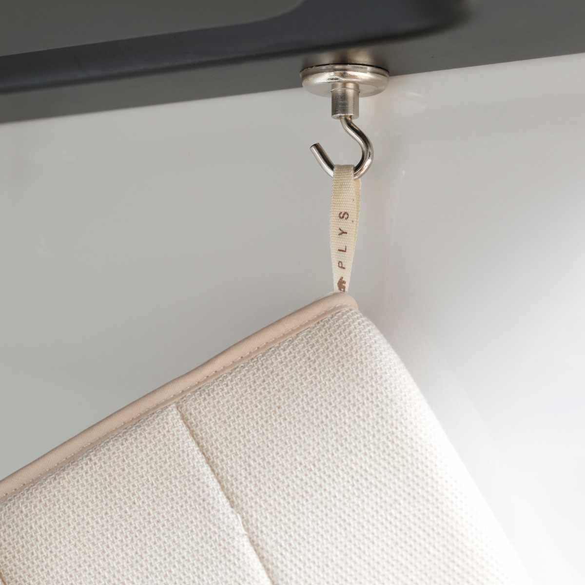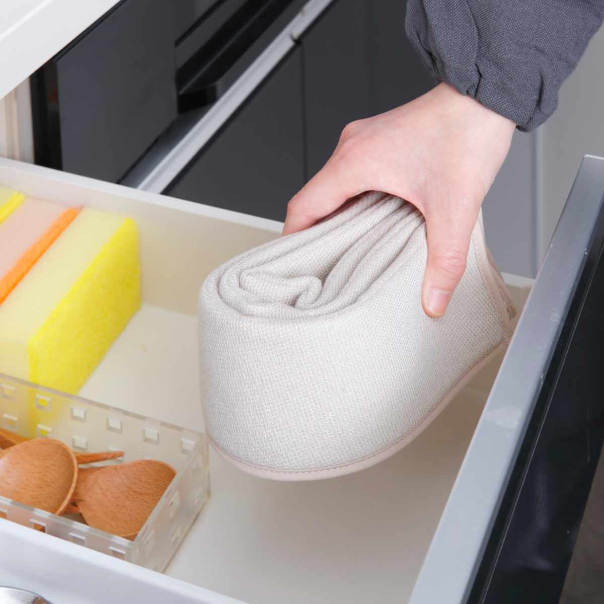 折りたためるので、使わないときは引き出しや棚にすっきり収納できます。縦方向のステッチが折りたたみをサポートし、簡単にコンパクトにまとめられる仕様です。