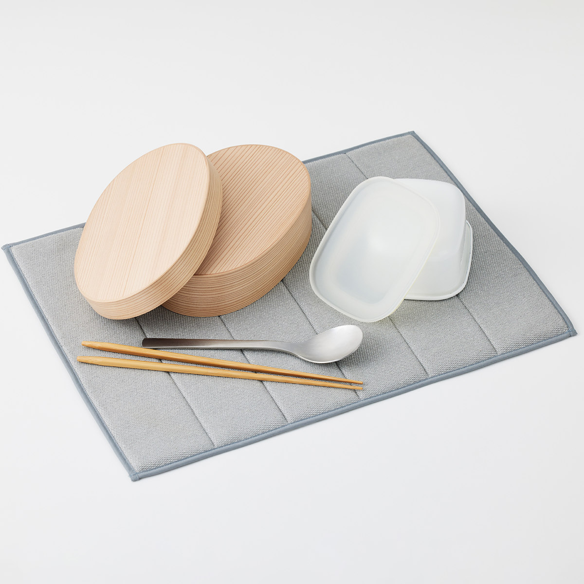 優れた調湿と消臭効果をもつ梅の種を炭にして練り込んで作られた、「梅炭和紙」を表面に使用しました。「梅炭和紙」は水を吸っても乾きが早く、サラサラでにおいません。グラスやカラトリー、口に触れる物を置く場所なので安心な素材を使っています。