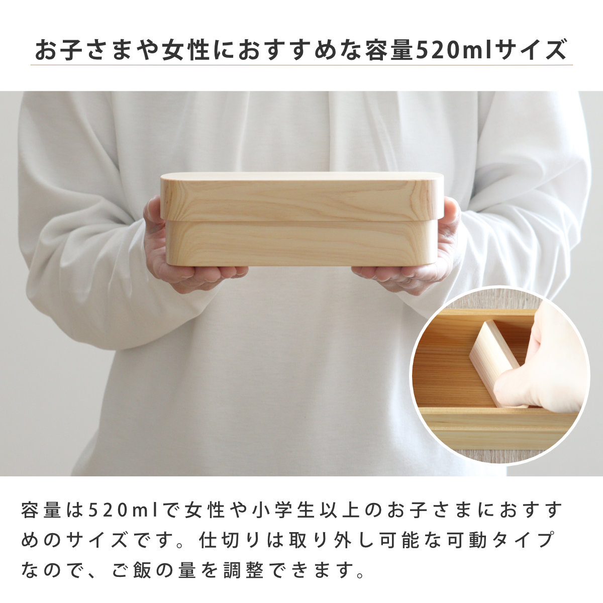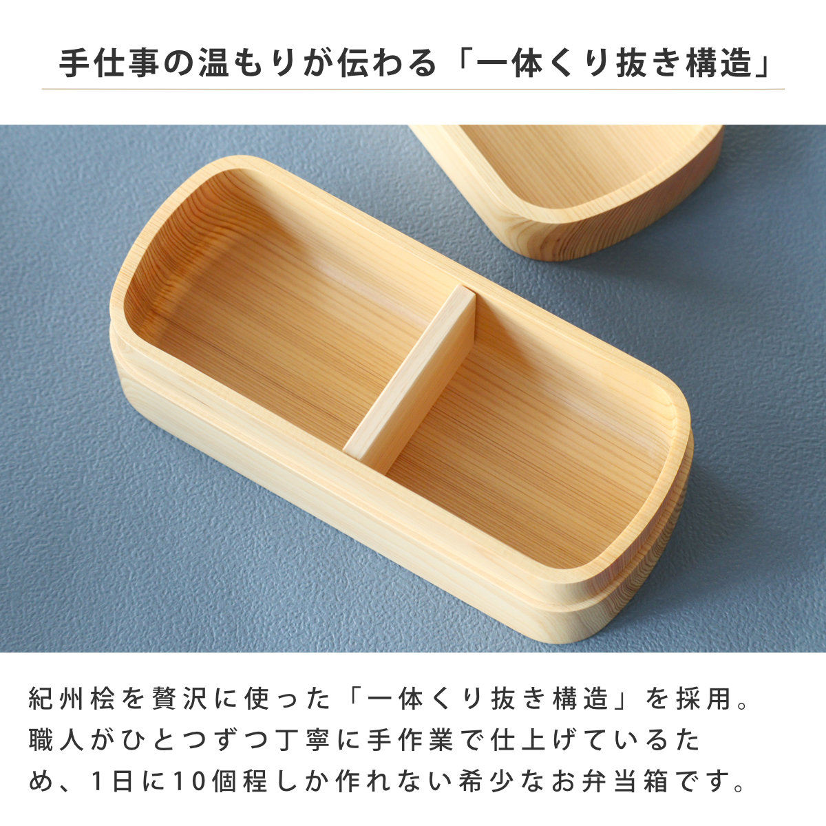 くり抜き弁当箱 1段 520ml 紀州桧弁当箱 type S-4 ナチュラル ( 弁当 食洗機対応 天然木 紀州桧 一段 おしゃれ 仕切り付き 日本製 食洗機OK お弁当 木 木製 くりぬき ランチボックス シンプル 和風 お弁当箱 弁当箱 )