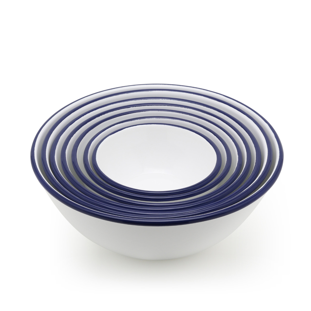 清潔感のあるネイビーの縁取りのホーローボウル 19.2cm