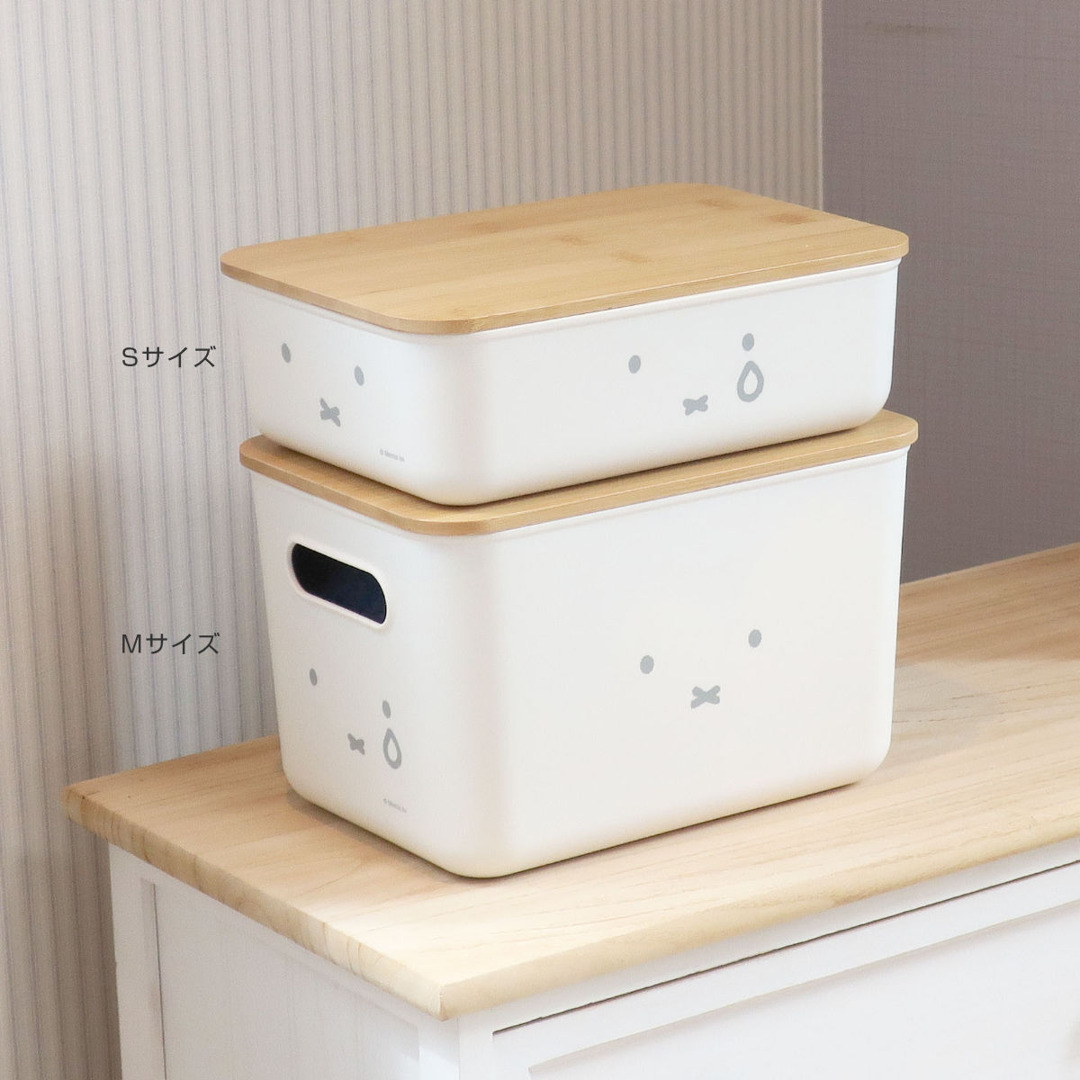 収納ボックス miffy バンブー ふた付き収納ケース M 幅26×奥行17.5×高さ16.2cm ( ミッフィー 収納 収納ケース ボックス 収納バスケット フタ付き ケース 持ち手付き 小物入れ 小物収納 ふた付き 積み重ね プラスチック おしゃれ )