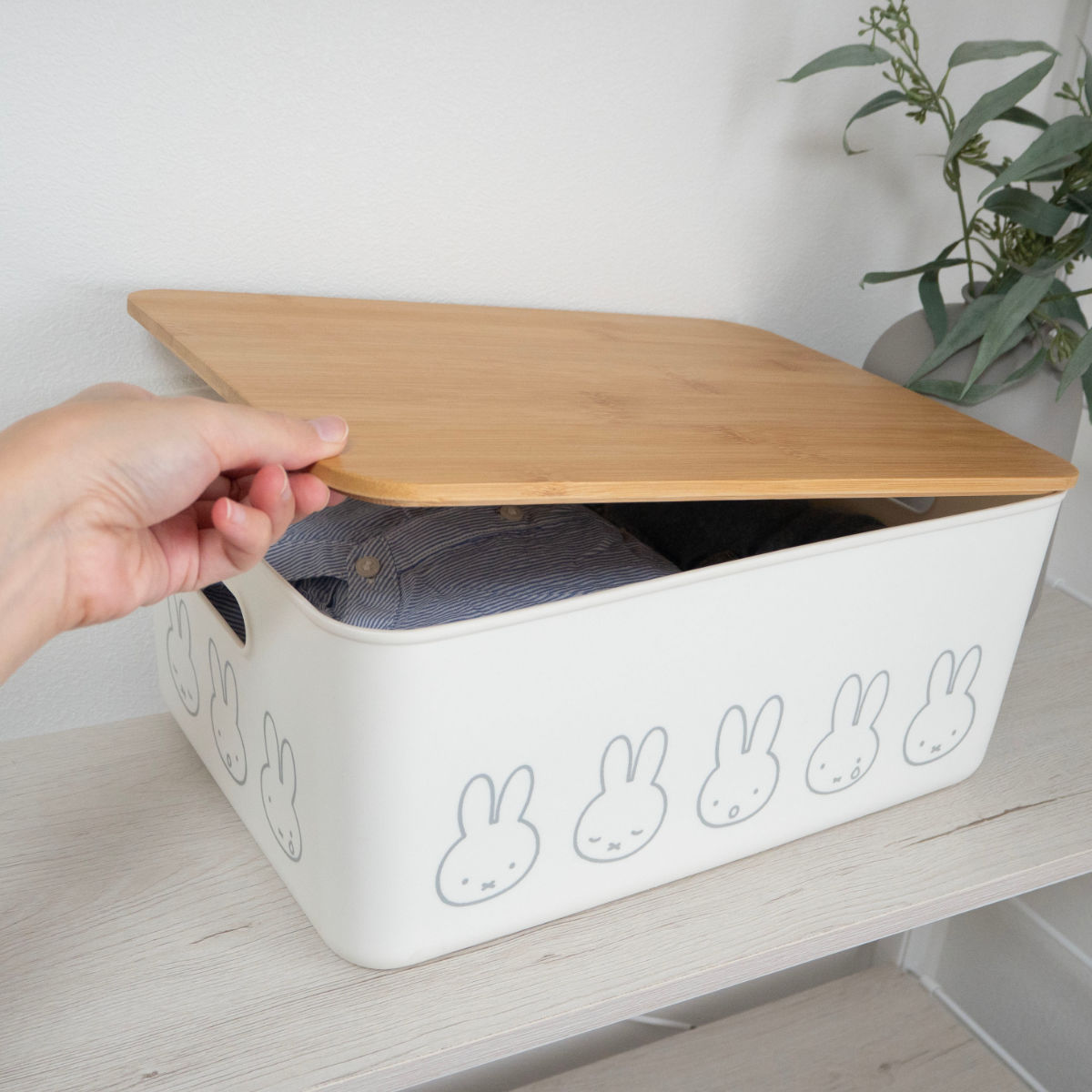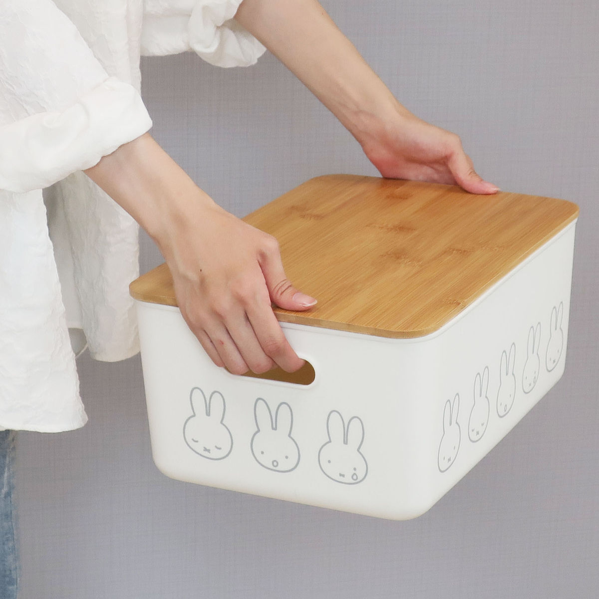 収納ボックス miffy バンブー ふた付き収納ケース L 幅36×奥行25.5×高さ16.2cm ( ミッフィー 収納 収納ケース ボックス 収納バスケット フタ付き ケース 持ち手付き 小物入れ 小物収納 ふた付き 積み重ね プラスチック おしゃれ )