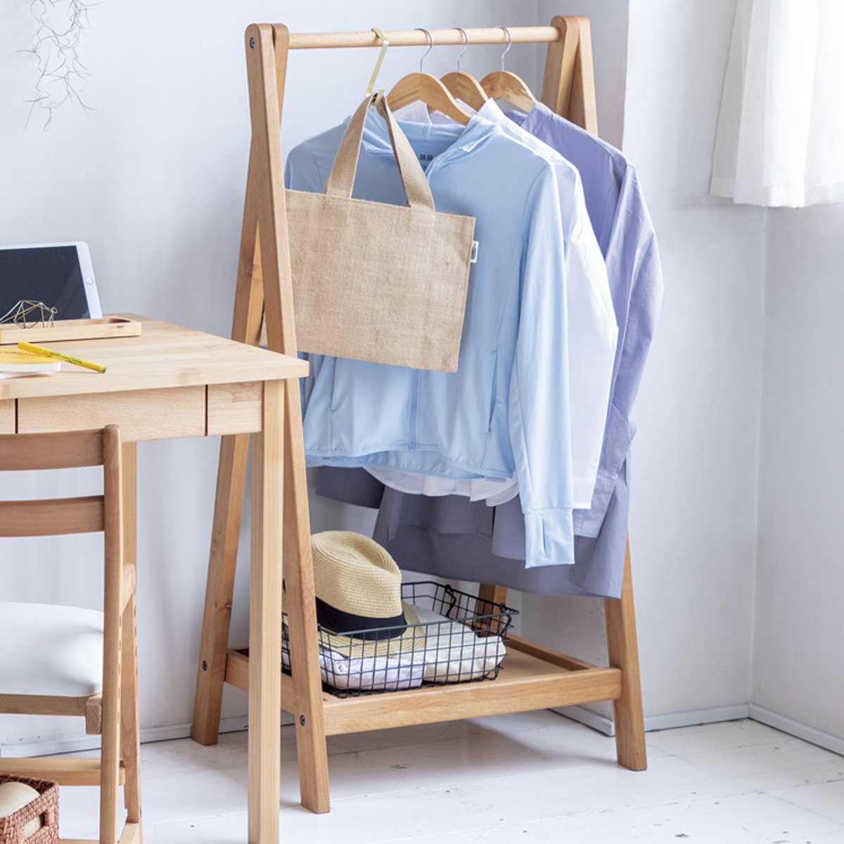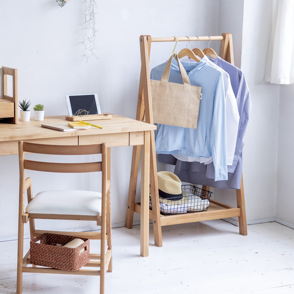 お子さまから大人の方まで幅広くお使いいただけるシンプルなデザインのハンガーラックです。使い込む程に味が出てくるアルダー無垢材の質感、飽きのこないシンプルで機能的なデザインに仕上げました。