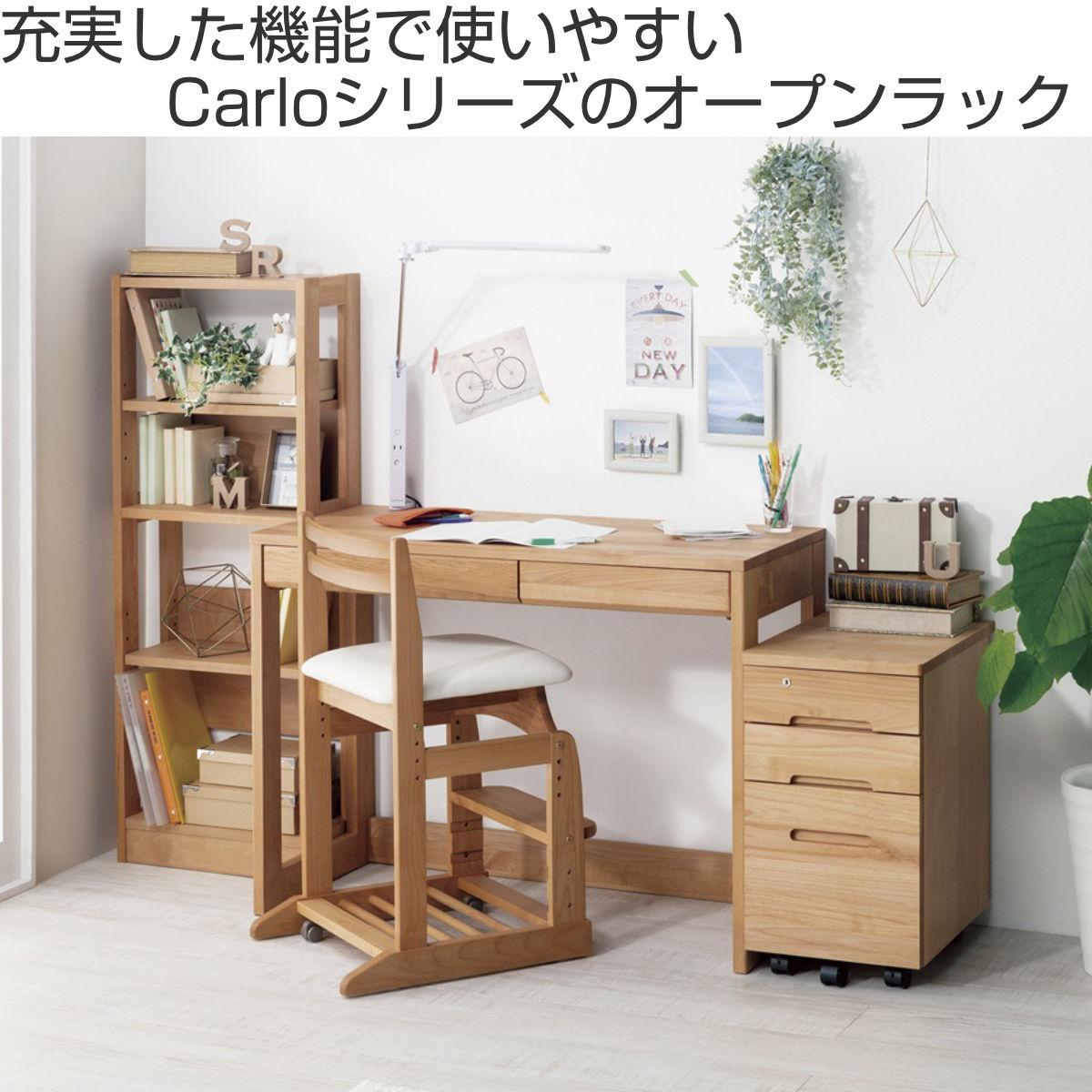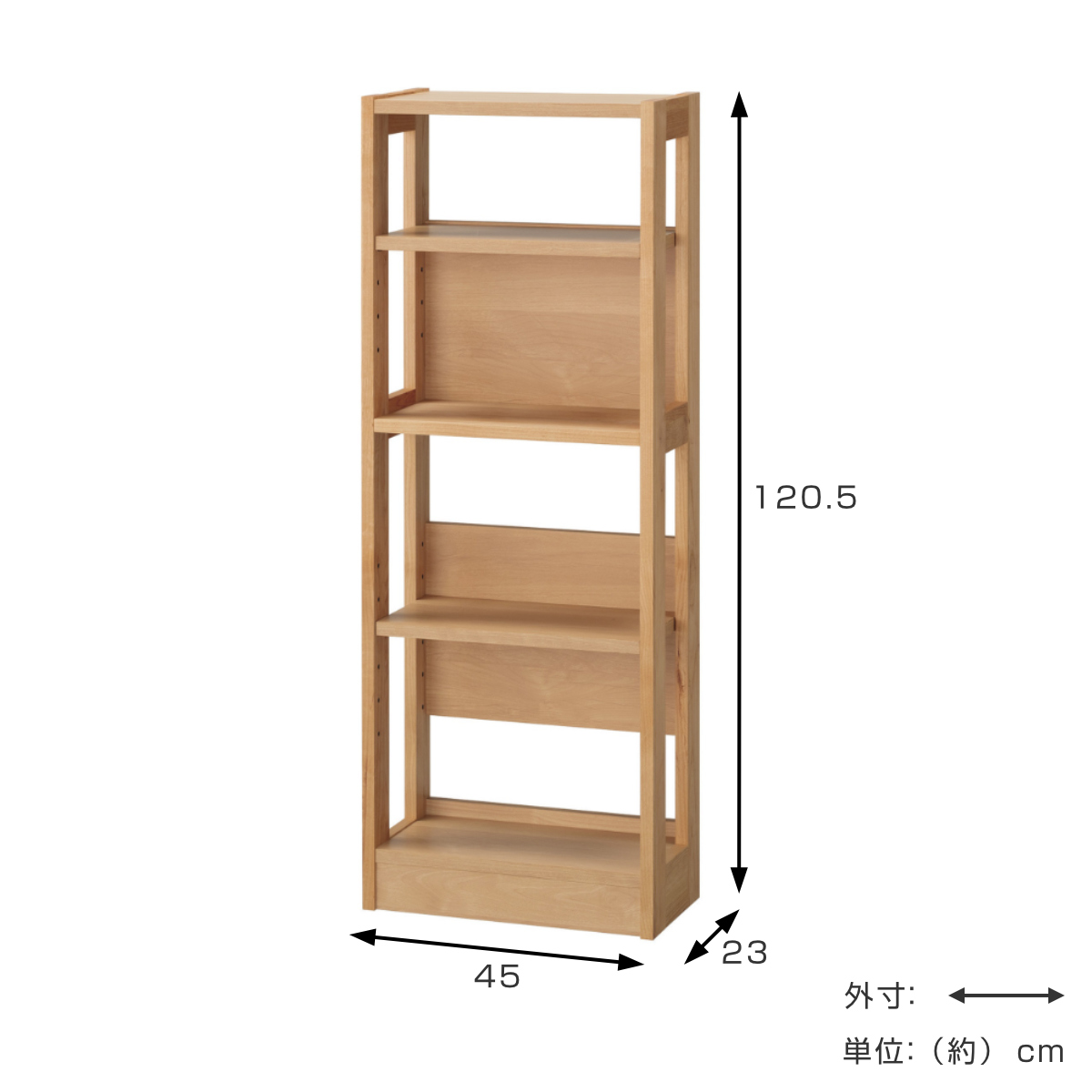 オープンラック 幅45cm 高さ120.5.cm 学習収納棚 マガジンラック カルロ ( デスク横 収納 ラック 本棚 収納棚 天然木 日本製 スリム リビング学習 木目 北欧 ナチュラル )