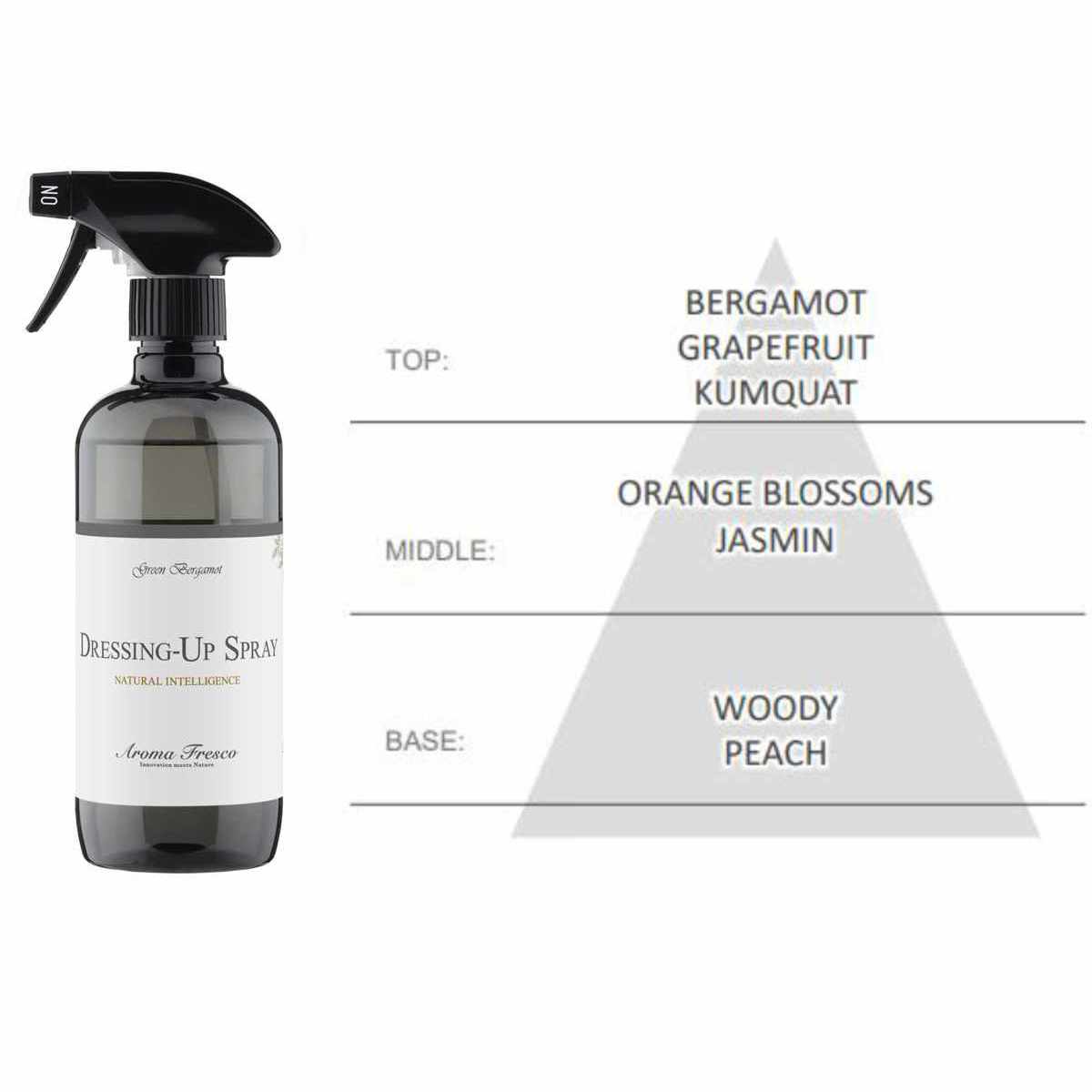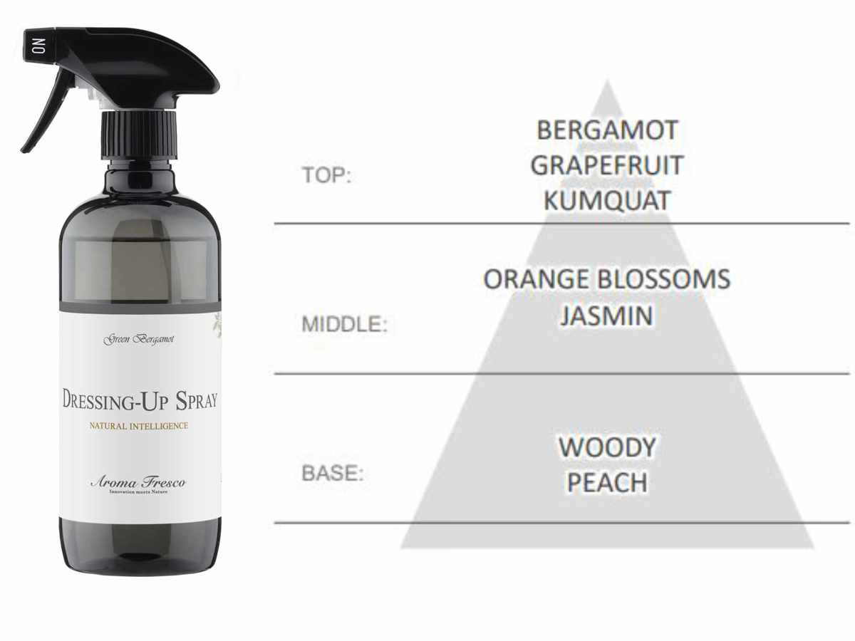 ファブリックミスト Aroma Fresco アロマフレスコ ドレッシングアップスプレー 480ml ( 衣類用 服 スプレー 日本製 植物由来 天然由来 ルームスプレー 衣類 香り お手入れ 寝具 ソファ シトラス フローラル フルーティー BPAフリー ) 【グリーンベルガモット】