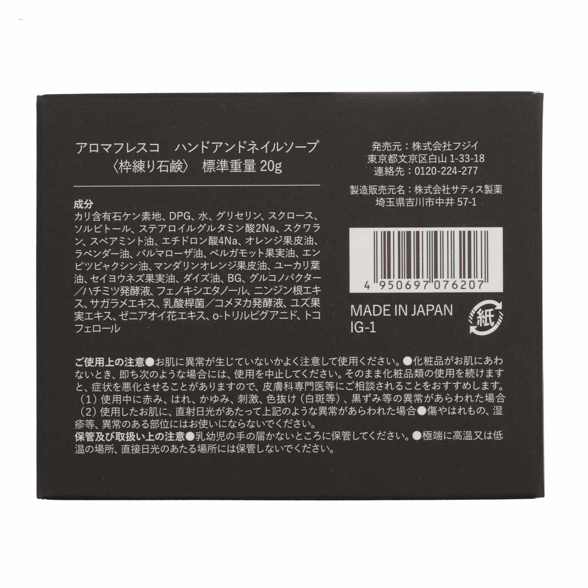 石鹸 Aroma Fresco アロマフレスコ ハンドアンドネイルソープ 20g ( 固形石鹸 枠練り石けん ハンド用 手洗い せっけん 石けん 植物由来 日本製 ハンドケア ネイルケア おしゃれ 天然成分 保湿 角質除去 香り ギフト )