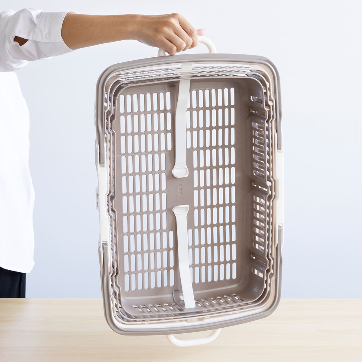 レジかご 折りたたみ ニューバスケット マイカゴ 幅57×奥行36.1×高さ23.7cm ( バスケット 収納 買い物かご 畳める コンパクト 買い物カゴ マイバスケット レジカゴ ショッピング カート 洗濯カゴ アウトドア 収納バスケット ) 【グレーホワイト】