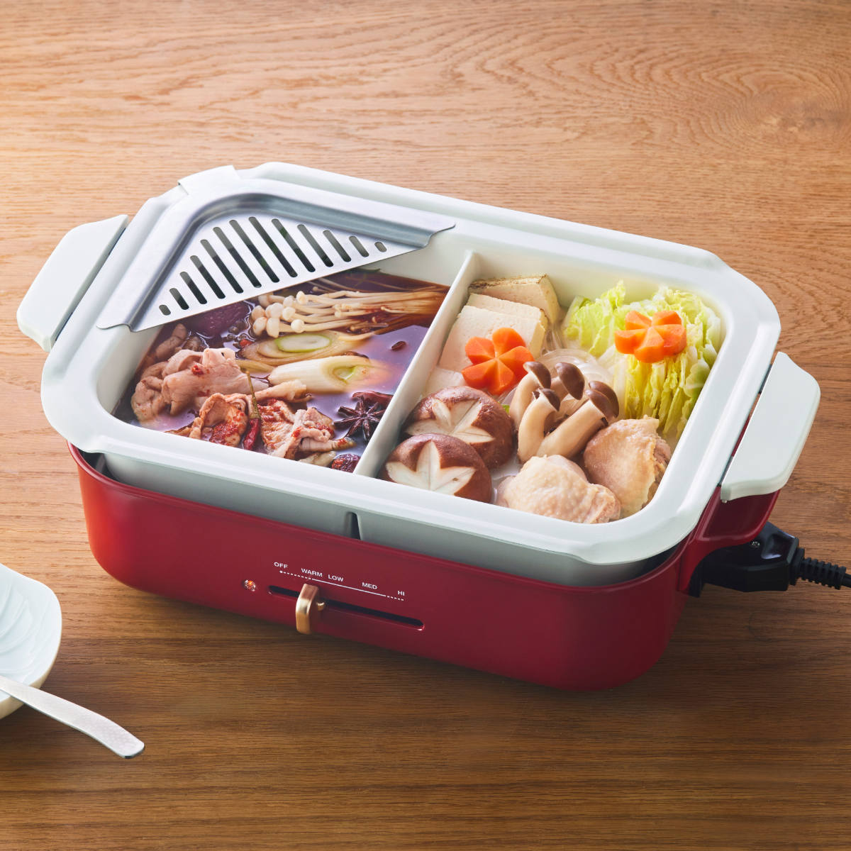 ホットプレートで2種類の鍋料理が楽しめるオプション仕切り鍋