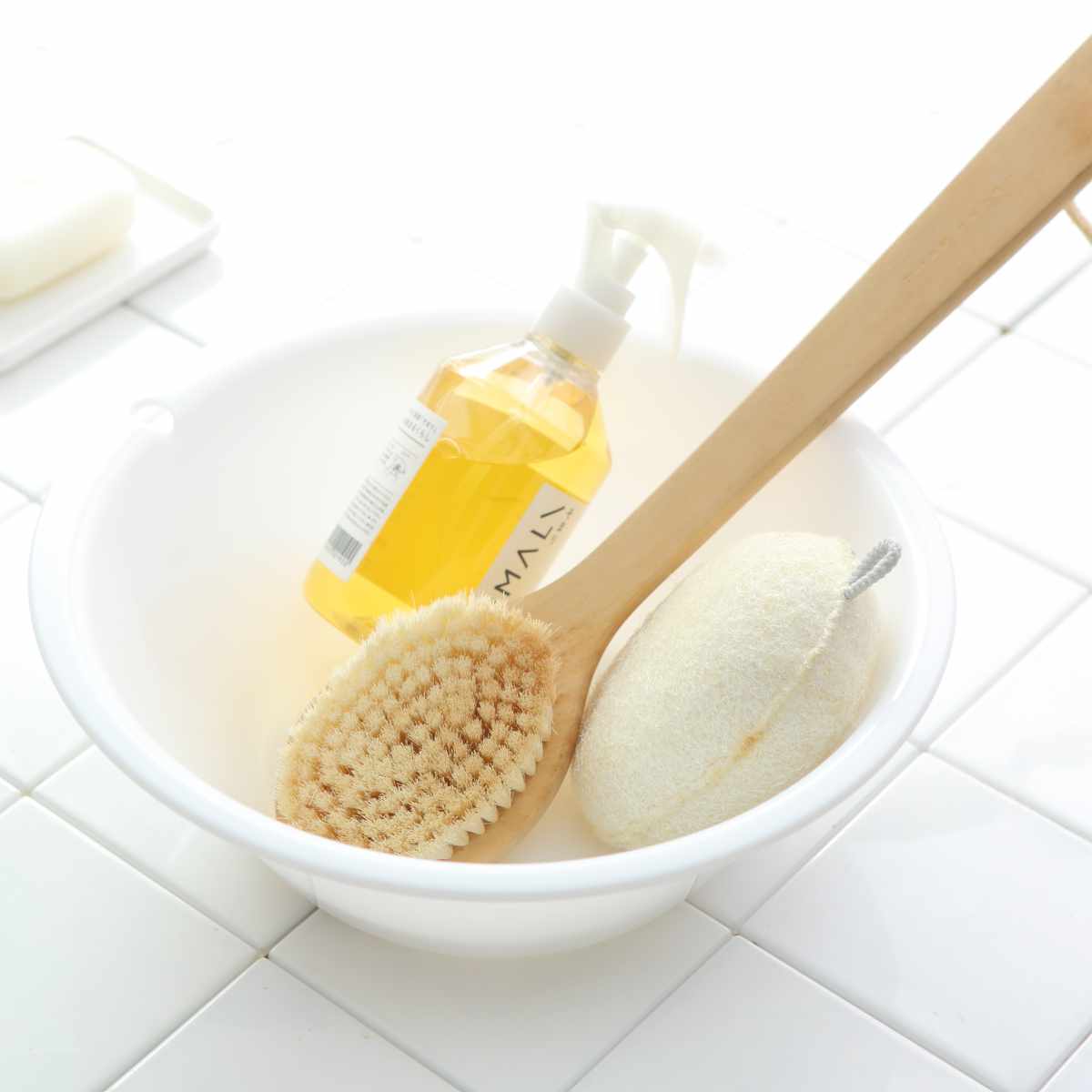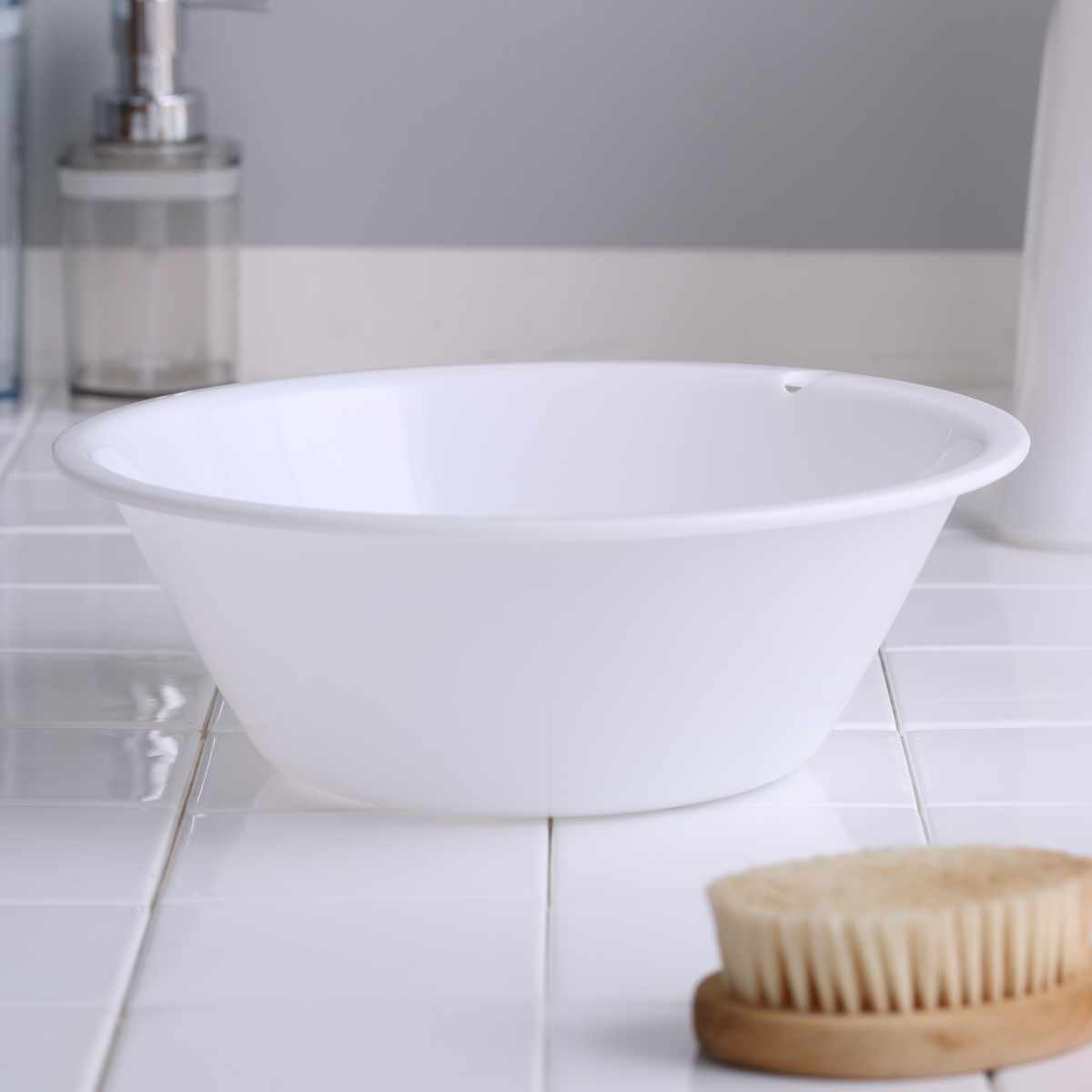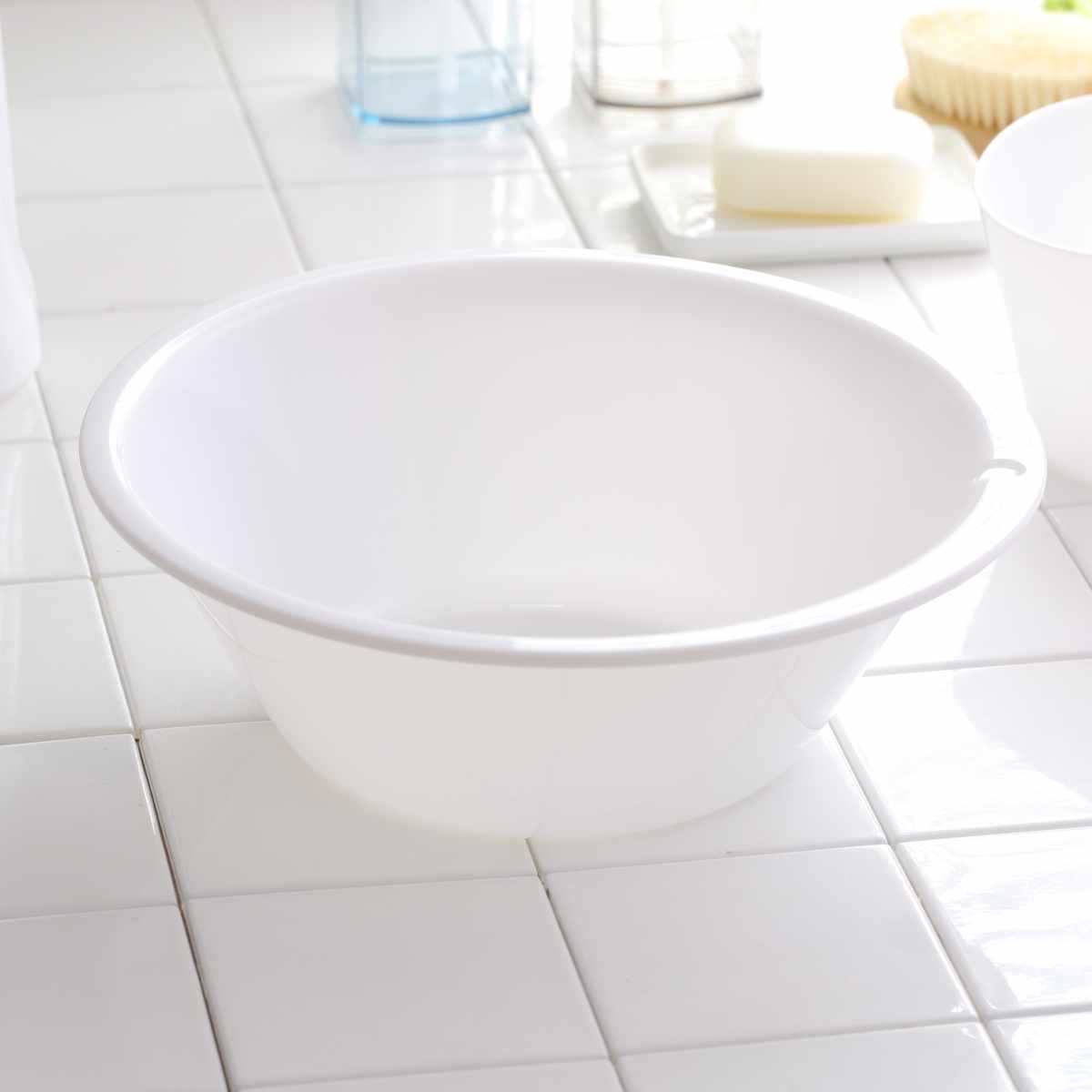 ほんのり透け感のあるやさしい色味で、浴室になじみやすい湯桶です。持ちやすい形状で扱いやすいです。抗菌加工も施されているので衛生的に使えます。