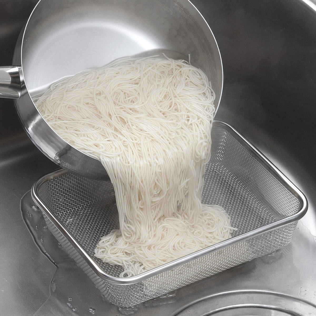 ●間口が広く平らなので安定性があり、麺や野菜の湯切りもしやすいです。