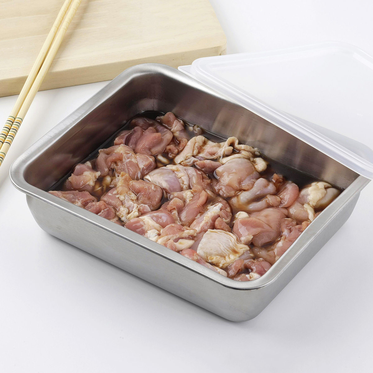 | 材質 | バット:18-0ステンレス 角ザル:18-8ステンレス(アミ:12メッシュ) フタ:ポリエチレン |