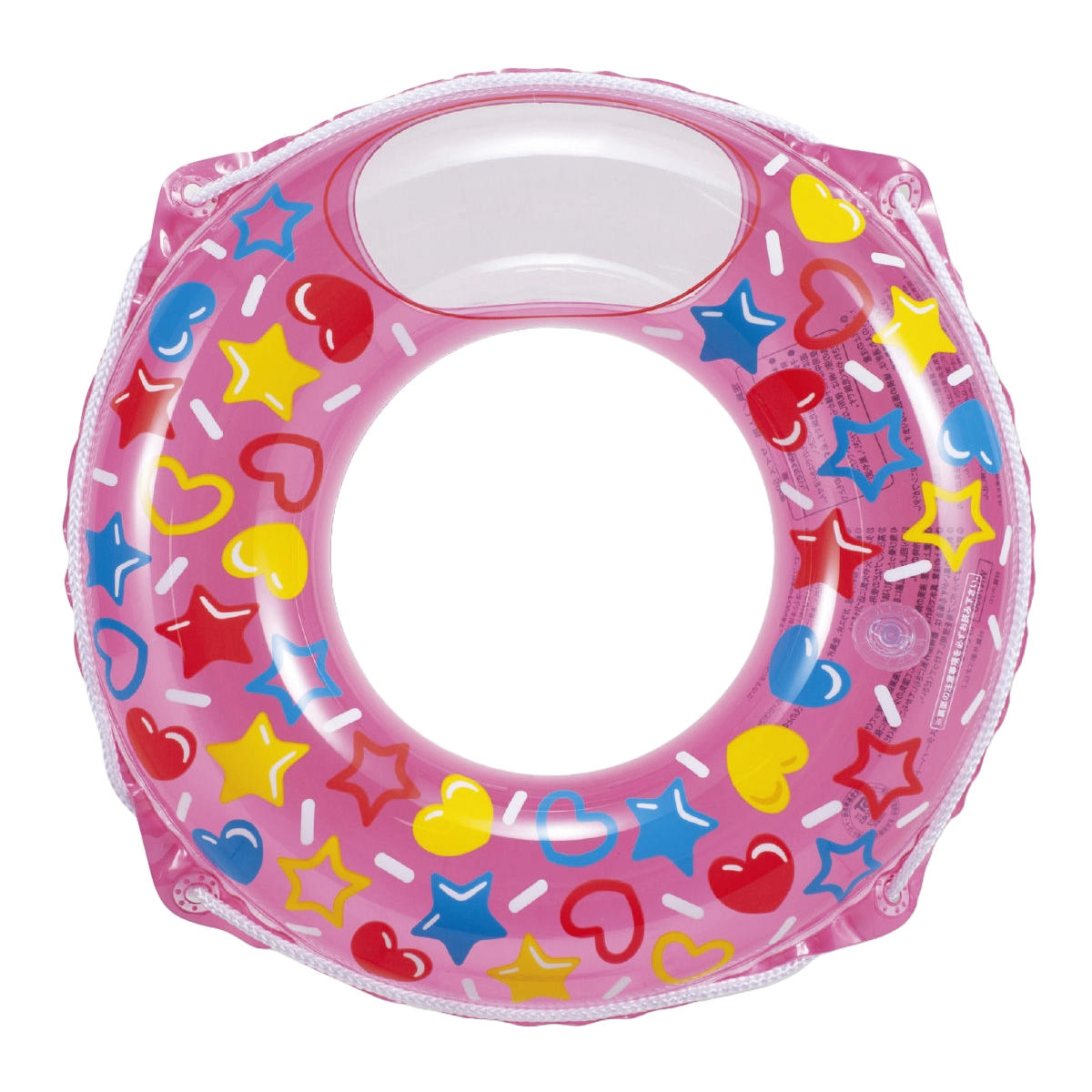 浮き輪 50cm のぞけるウキワ50ピンク スターハート ( 子供 浮輪 50 うきわ ウキワ 子供用 浮き袋 浮き具 水あそび こども 水遊び 50センチ レジャー用品 アウトドア プール 夏 レジャー かわいい 可愛い 星 紐付き )