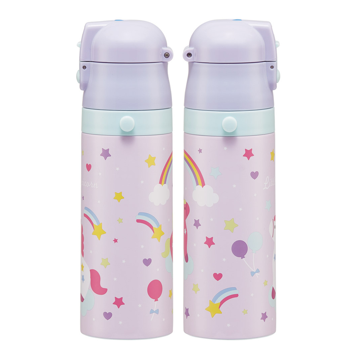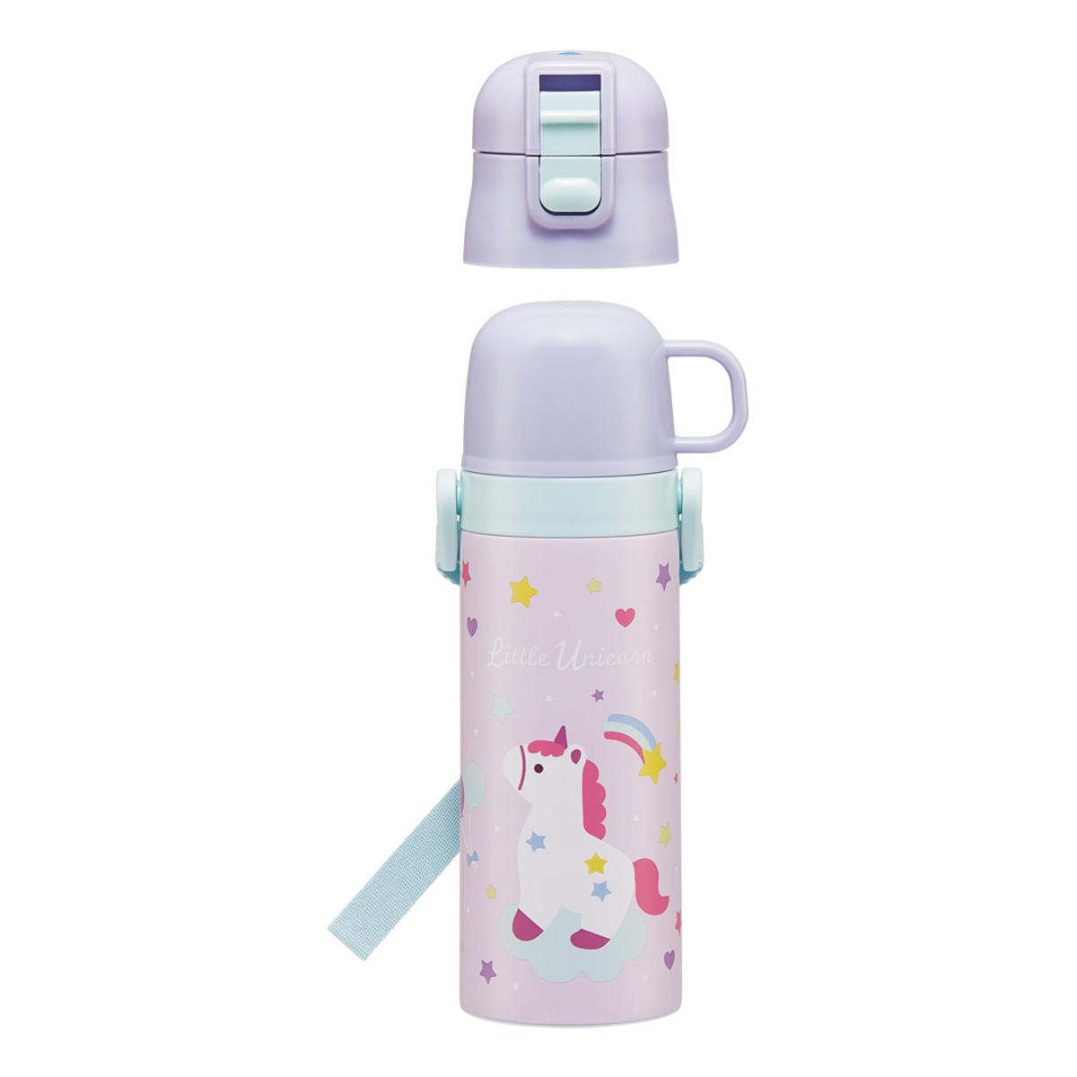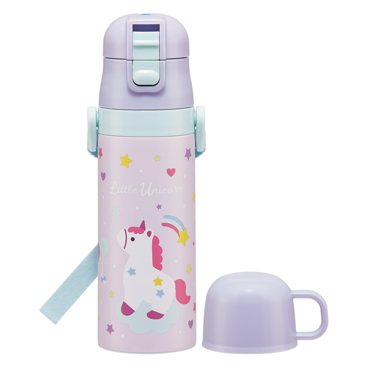 水筒 470ml 430ml 超軽量2WAYステンレスボトル リトルユニコーン ( 保冷 保温 直飲み コップ付き ワンプッシュ マグボトル コップ飲み 2way 子供用 すいとう ボトル キッズ ワンタッチ ステンレス 超軽量 軽量 )