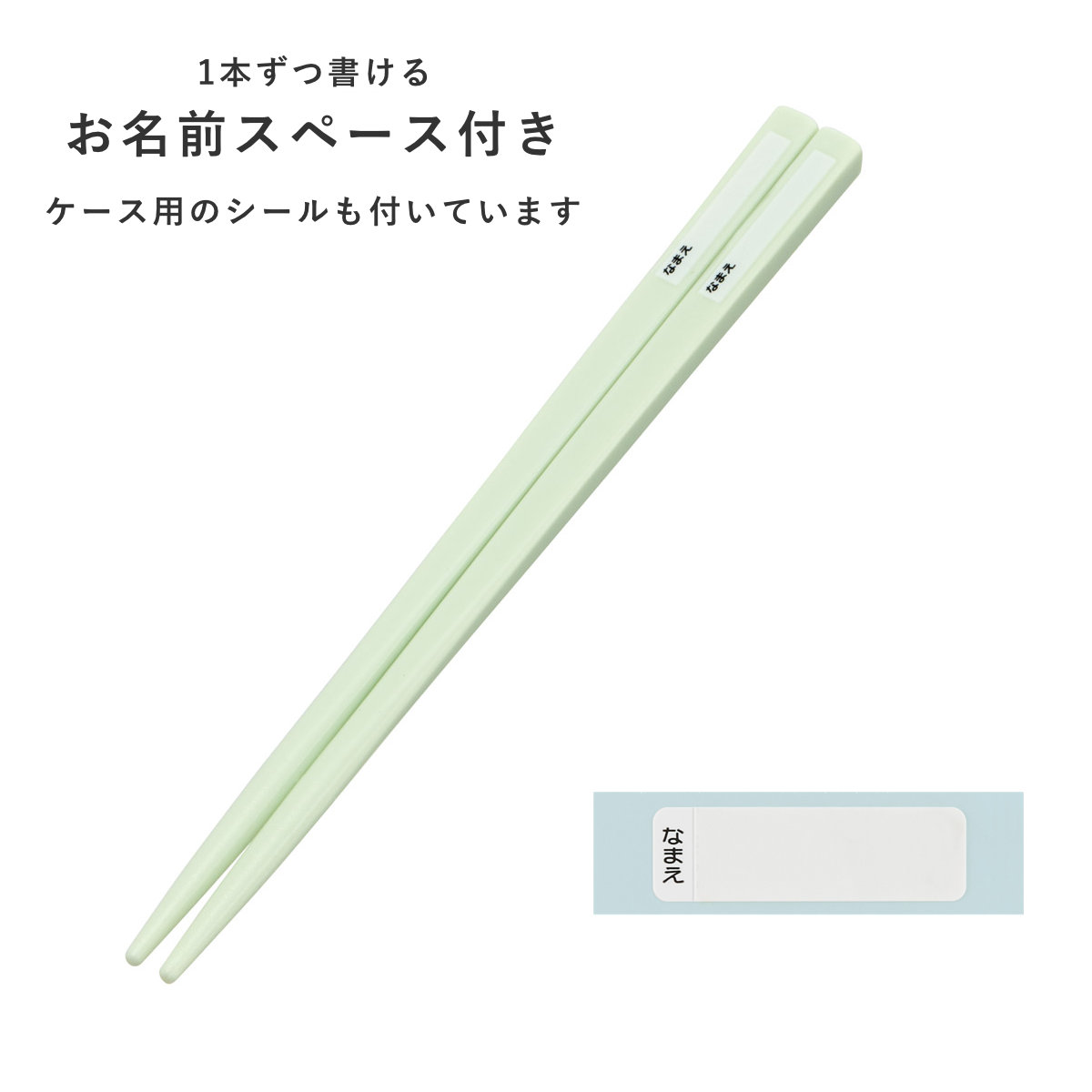 お箸には1本ずつ名前を書き込める名前スペースがあります。ケース用のシールも付いています。