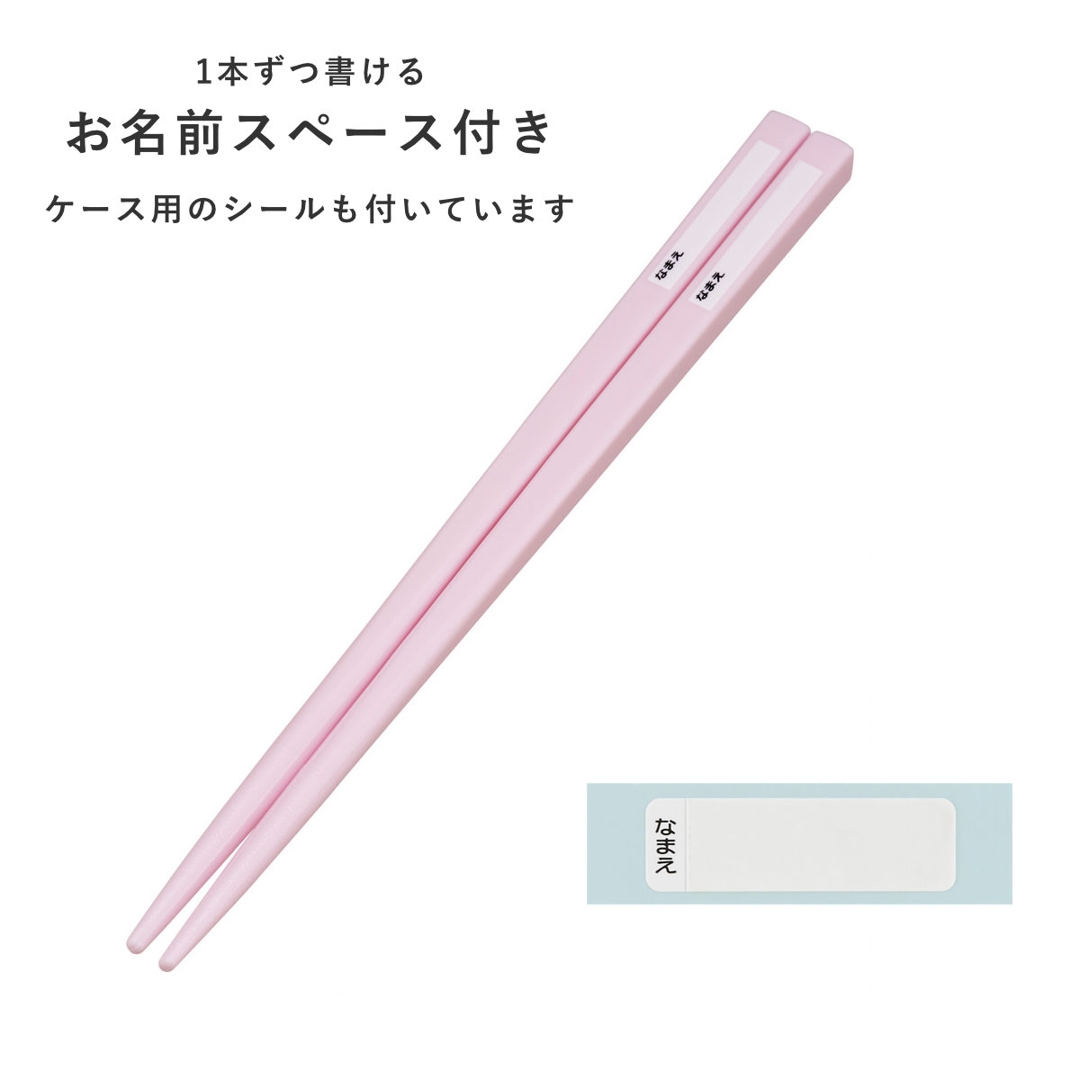 お箸には1本ずつ名前を書き込める名前スペースがあります。ケース用のシールも付いています。