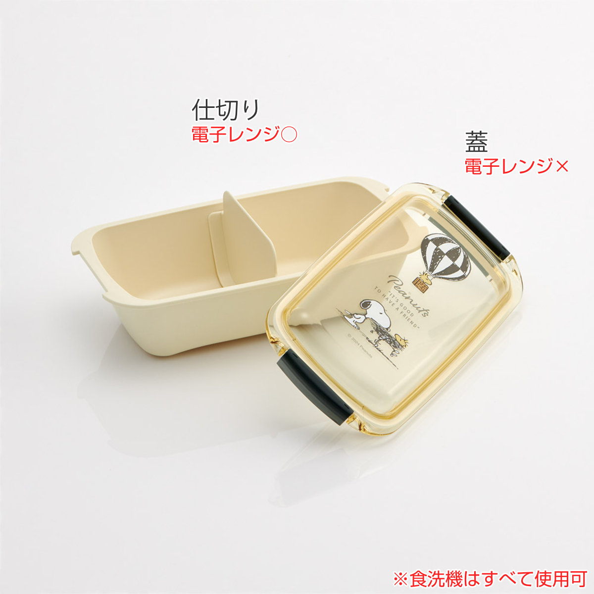 弁当箱 1段 530ml ふわっとタイトランチボックス スヌーピー バッジ ( SNOOPY ランチボックス 食洗機対応 レンジ対応 抗菌 日本製 ドーム蓋 大人 キッズ 食洗機OK レンジOK お弁当 弁当 一段 2点ロック 銀 AG 抗菌加工 )