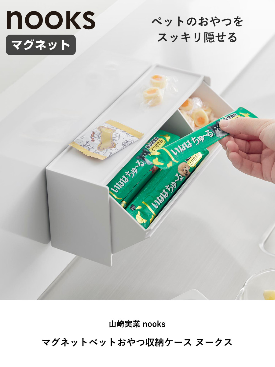 山崎実業 nooks マグネットペットおやつ収納ケース ヌークス ( 4903208019835 ペットおやつ収納 ペットフード マグネット 壁面収納 壁面 浮かせて収納 浮かせる収納 ペット用品 おやつケース ) 【ホワイト】