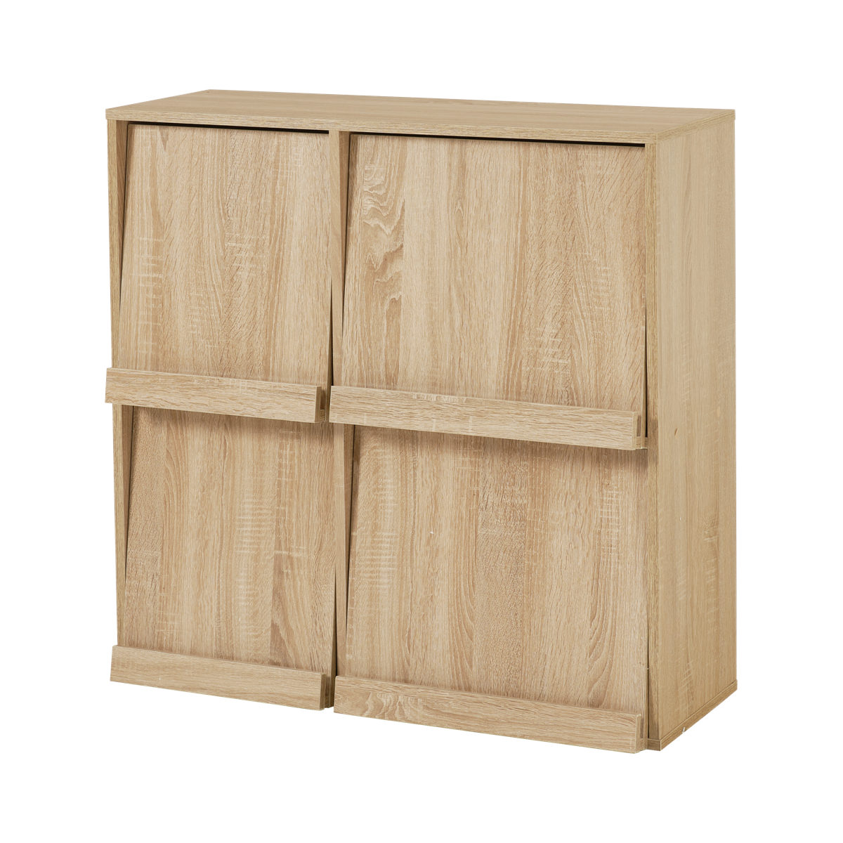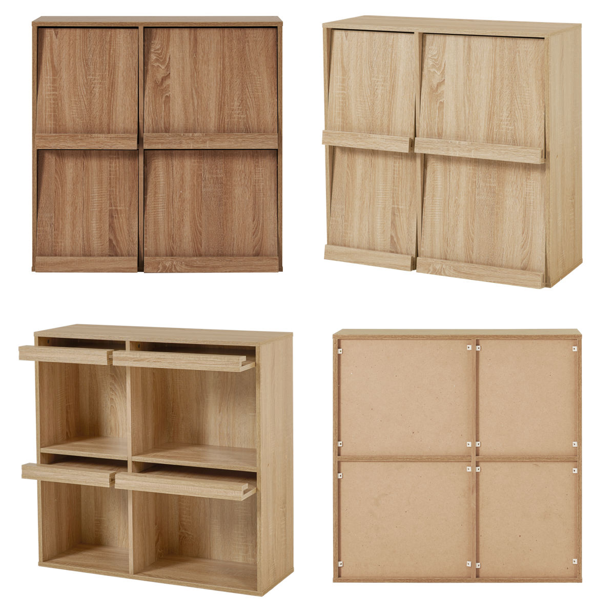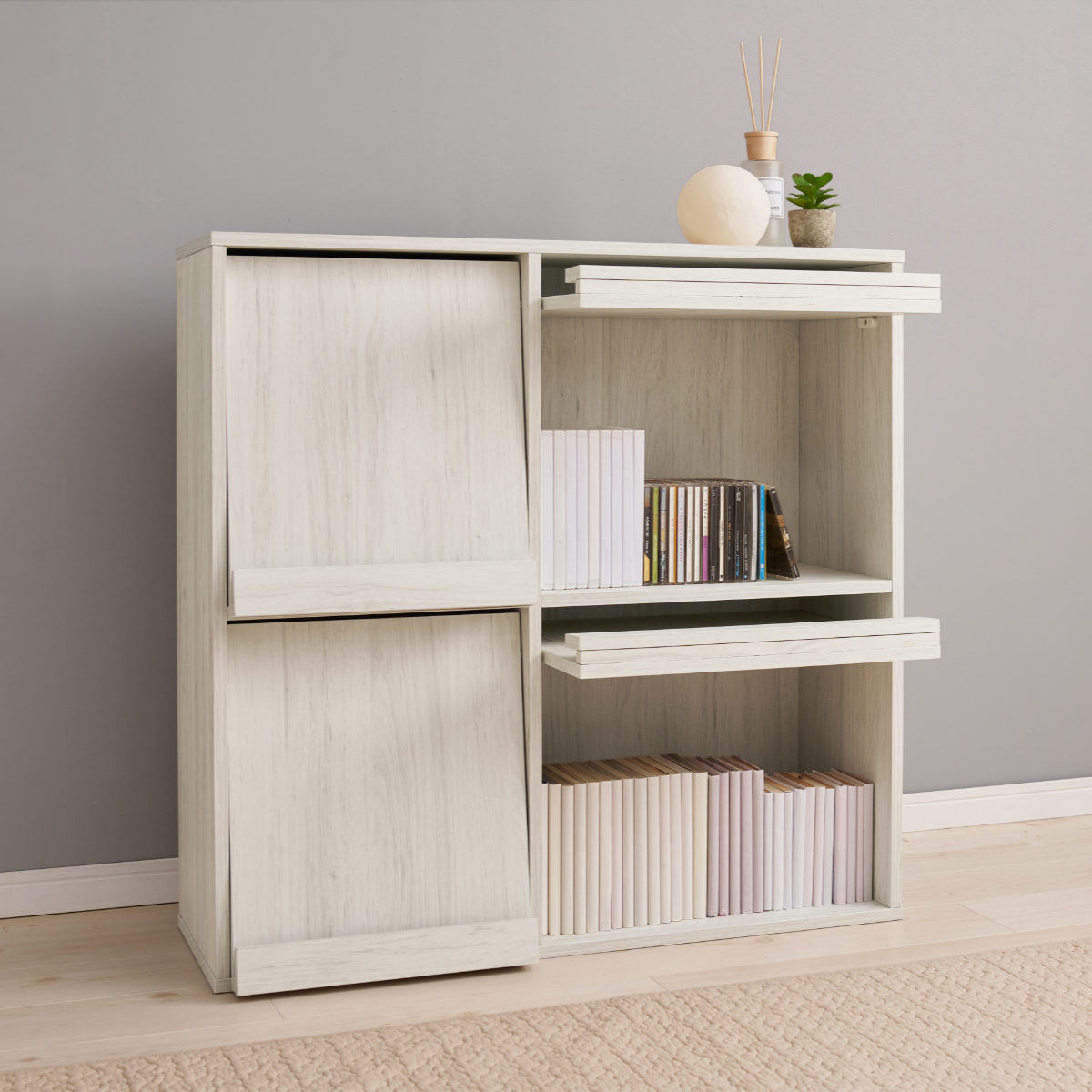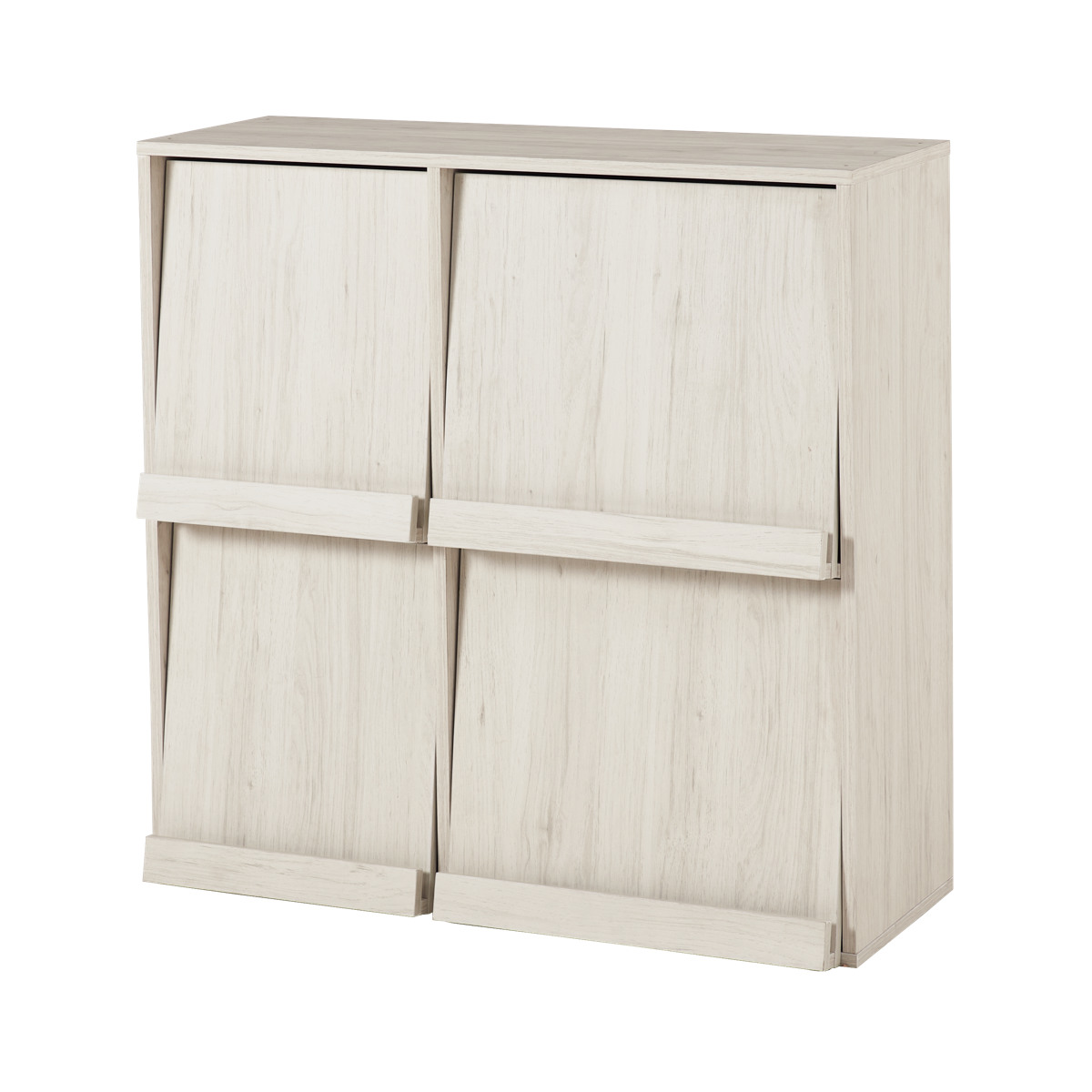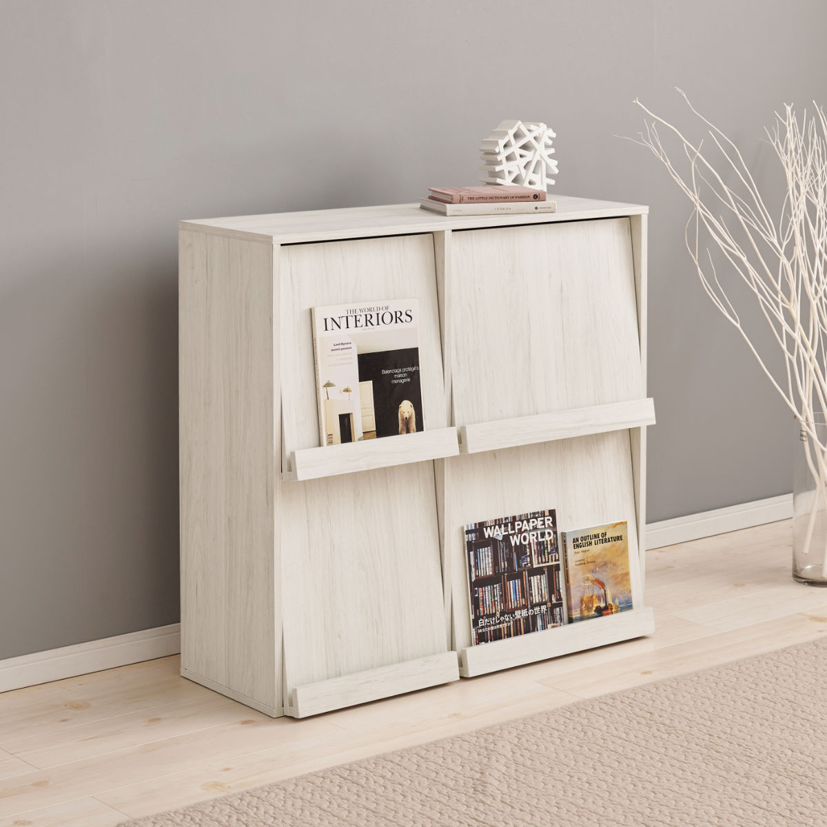 フラップ ディスプレイラック 幅85cm 2列2段 連結可能 ( ラック 棚 ディスプレイ フラップ扉 A4対応 収納 本棚 大容量 薄型 隠す収納 ブラウン ナチュラル ホワイトウォッシュ ) 【ホワイトウォッシュ】