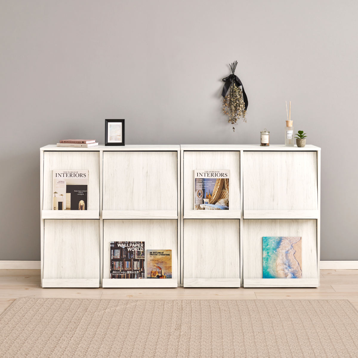 フラップ ディスプレイラック 2台入 幅85cm 2列2段 連結可能 ( ラック 棚 ディスプレイ フラップ扉 A4対応 収納 2台セット 本棚 大容量 薄型 隠す収納 ブラウン ナチュラル ホワイトウォッシュ ) 【ブラウン】