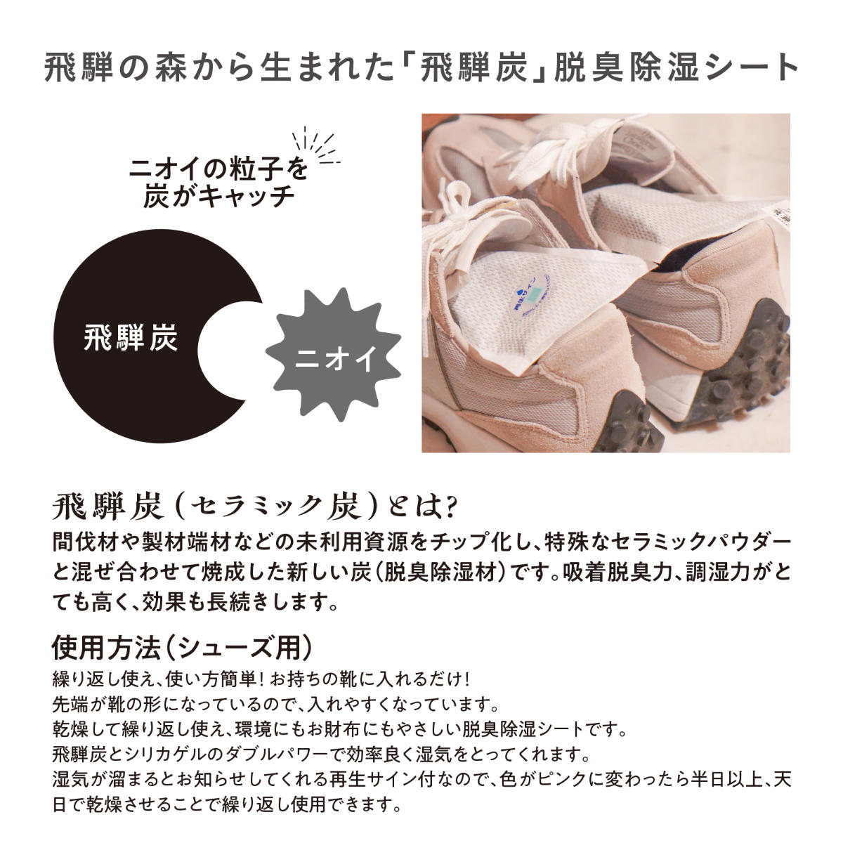 除湿シート シューズ用 脱臭除湿シート 3足 ( 除湿剤 除湿 脱臭 吸湿 調湿 炭 シリカゲル 靴用 吸湿剤 脱臭剤 湿気とり 湿気対策 消臭 靴 下駄箱 靴箱 くつ箱 玄関 消臭効果 除湿効果 吸着脱臭力 繰り返し使える 再生 エコ 飛騨炭 )