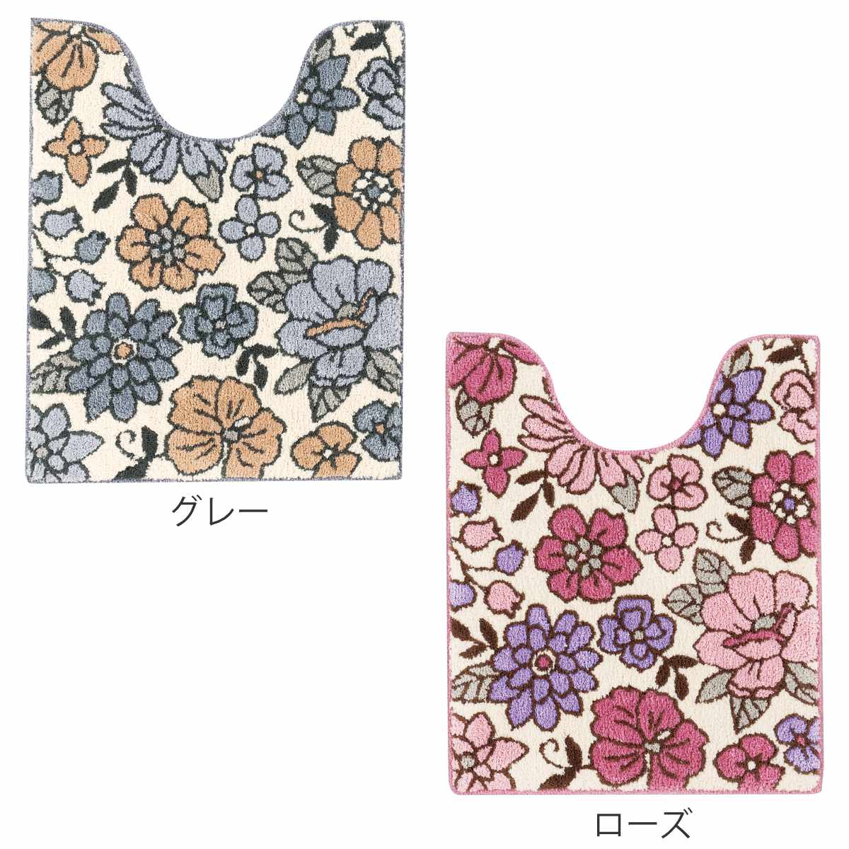 トイレマット シャーロット 約75×60cm ( トイレ マット 足元マット ロング 洗える 花柄 トイレタリー 洗濯可 75×60 ロングタイプ グレー ローズ ) 【グレー】
