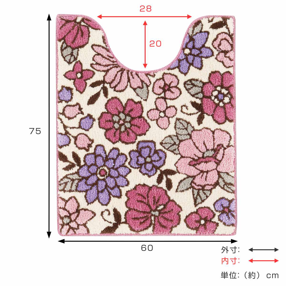 大きな花柄が目を惹くトイレマットロング 75×60cm