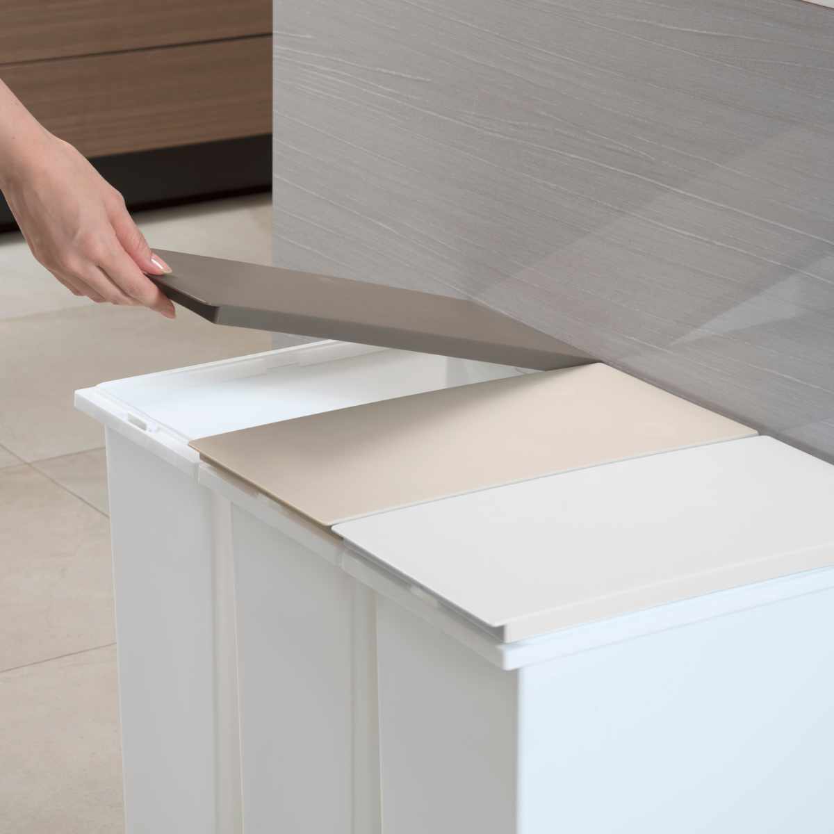 キッチンやリビングなど様々な場所に溶け込む、シンプルなデザインのゴミ箱です。グラデーションアースカラー3色のふたで、分かりやすくゴミを分別できます。