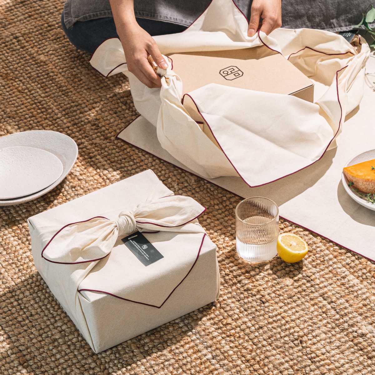 ラッピングには布が使われています(日本でいう風呂敷)。韓国では「福」を包むという意味もあり、お祝い事に使われます。受け取った方が生活のなかで繰り返し生かせるところも合理的です。大切な方への贈り物としても喜ばれます。