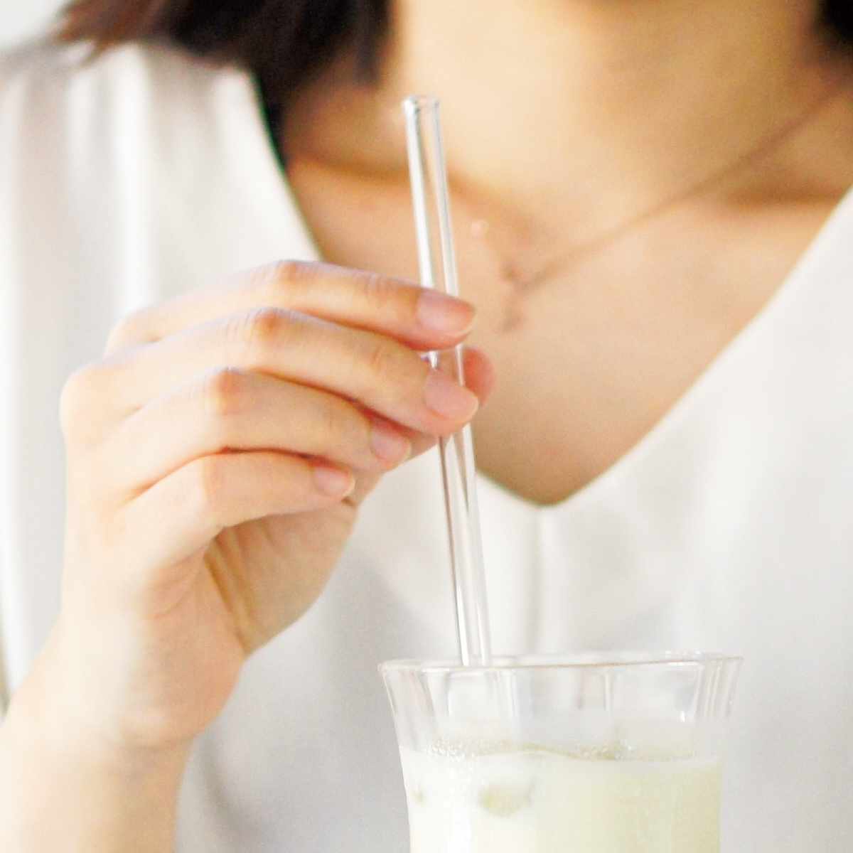 少し背の高いグラスや、500ml紙パックに丁度いいサイズの20cmです。ガラス製のストローは、ひんやりと滑らかな触り心地で、飲み物の味や香りを損なうことなく、ドリンクを味わうひと時をより上質なものにしてくれます。