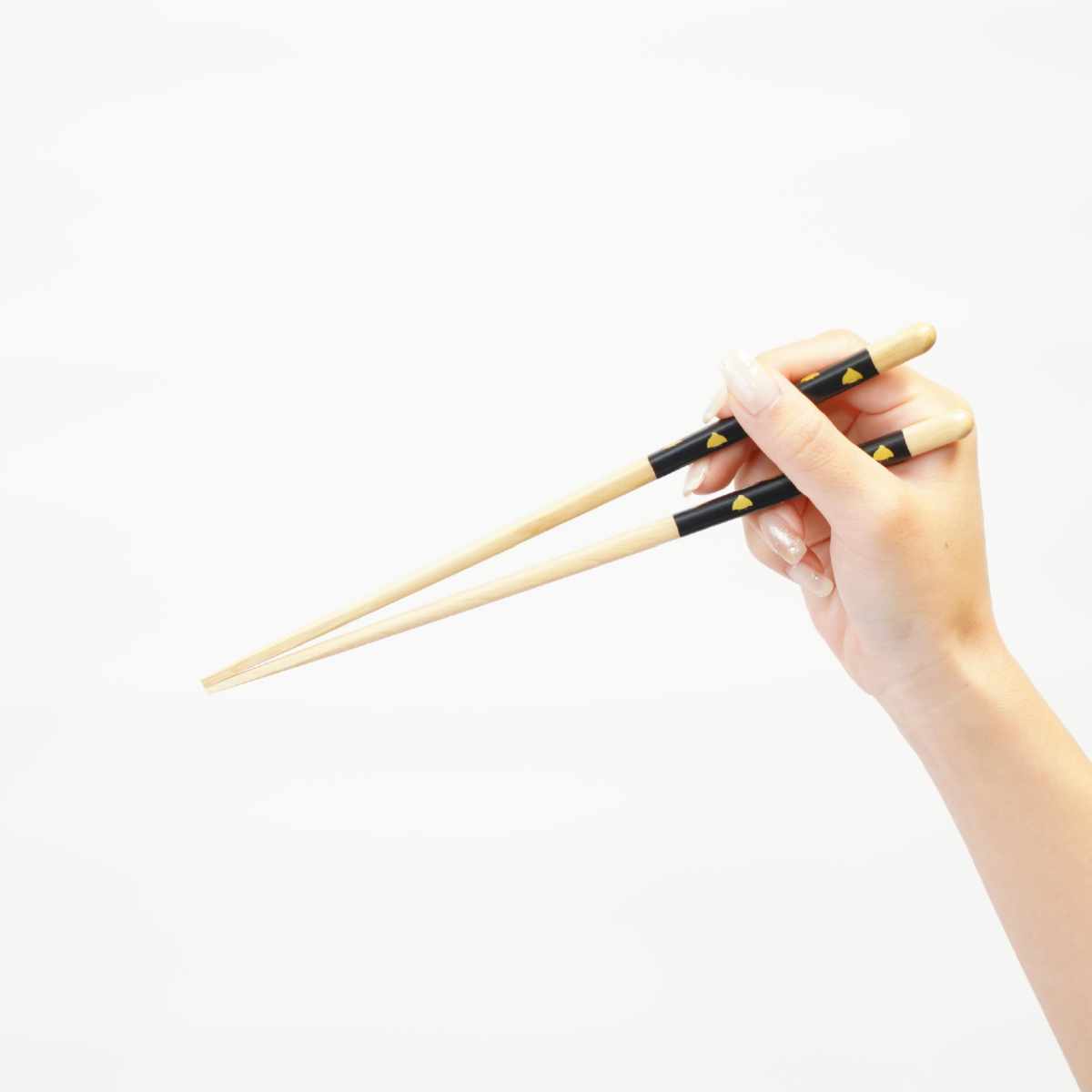 軽い力でしっかりとつまめる箸先に特殊なスタッドレス加工をほどこしたお箸です。コンニャクや麺類、お刺身など普通のお箸では滑りやすい食材が驚くほど簡単につまめます。