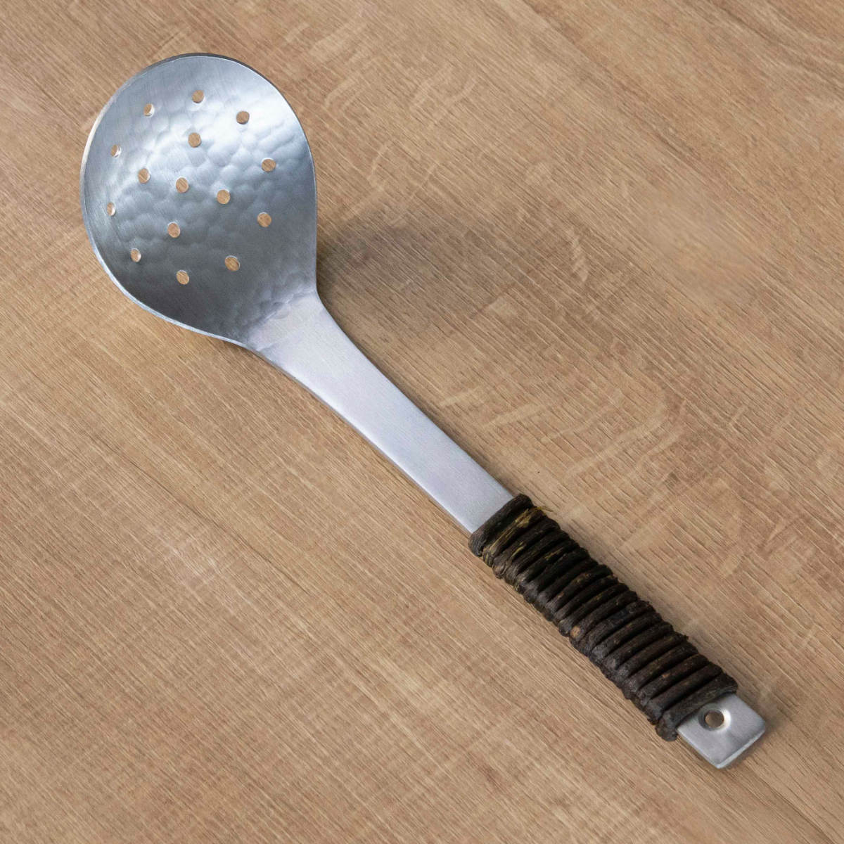 工房アイザワ アルミニウム アケビ巻穴明お玉 中 ( aizawa 穴あきお玉 穴杓子 レードル 穴あり 日本製 鎚目 サービングスプーン 取り分けスプーン アイザワ 燕三条 美しい 高級感 レトロ 職人技 高品質 シンプル キッチンツール )