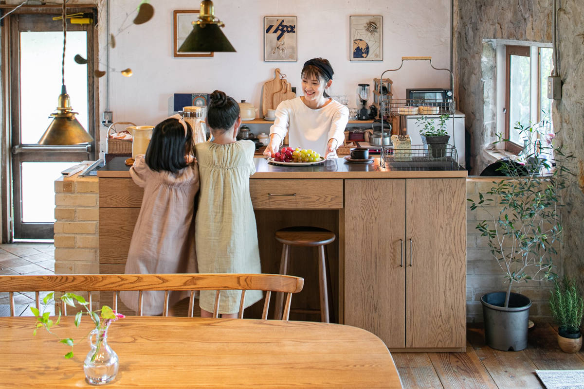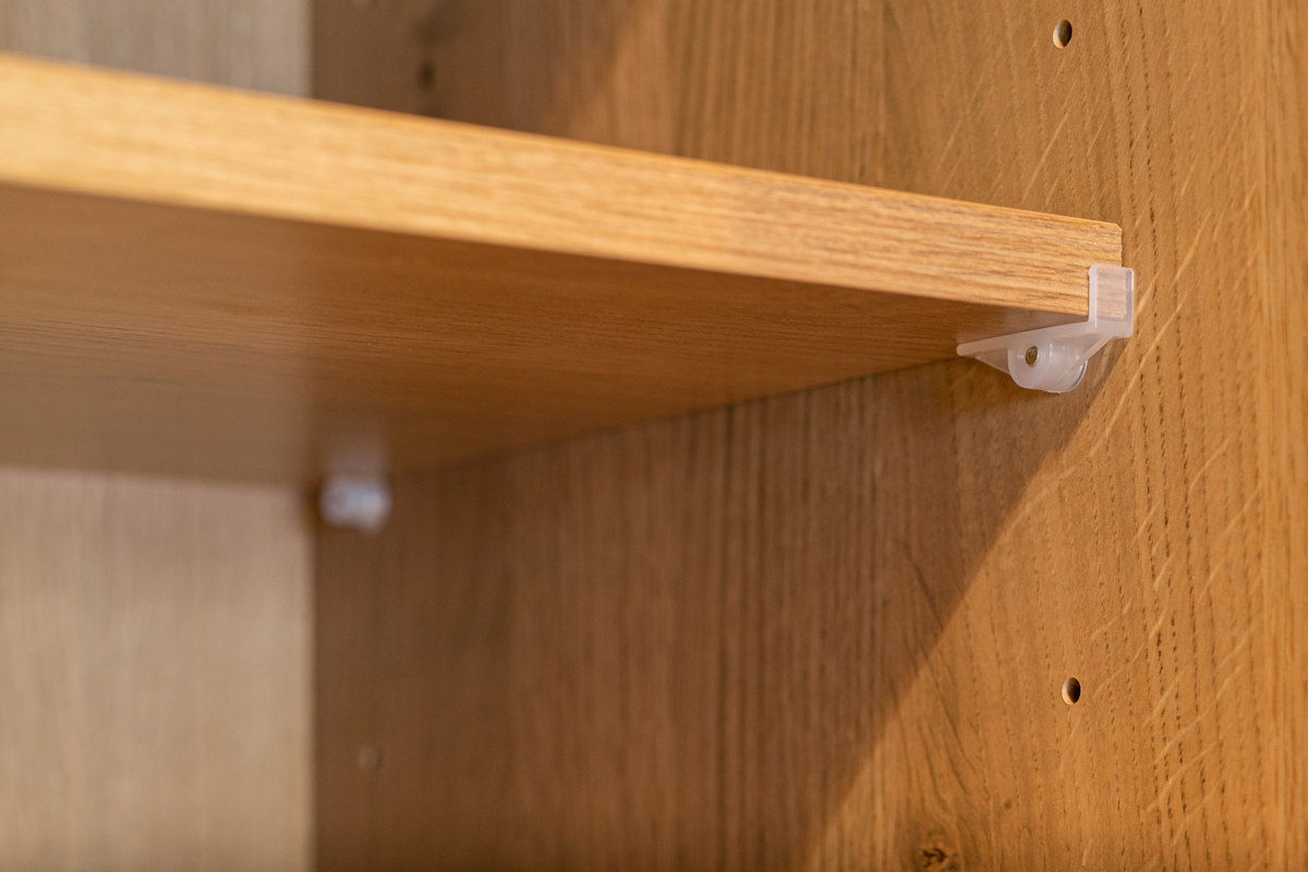 お好みで組み合わせて、自分だけの収納を作ることができるキッチン収納の「可動棚開き戸」です。木目が美しいオークの突板を前板に使用し、天然木の温かみを感じられるナチュラルな印象。何年経っても飽きのこない、暮らしにぴったりと寄り添う1台です。