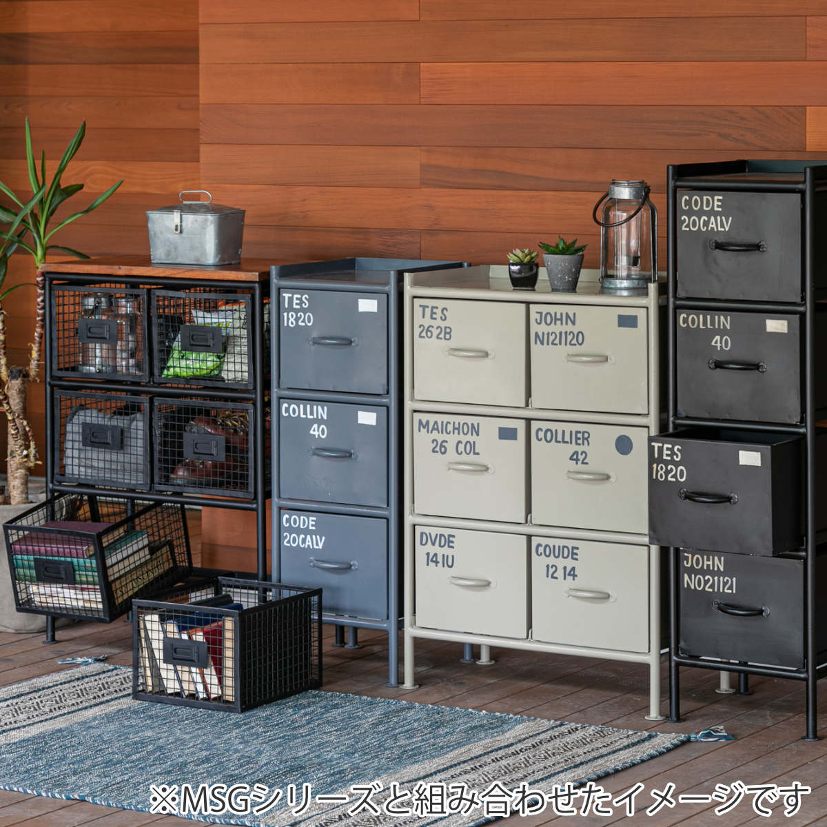 テイストが異なる中が見えない引出しの「MSGシリーズ」とサイズを共有しているので、引出しを入れ替えて使えば楽しさアップです。