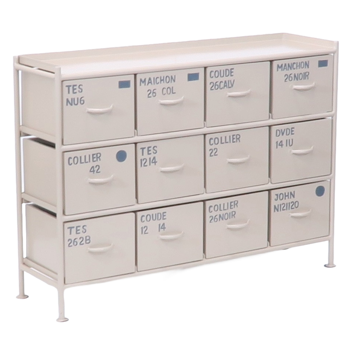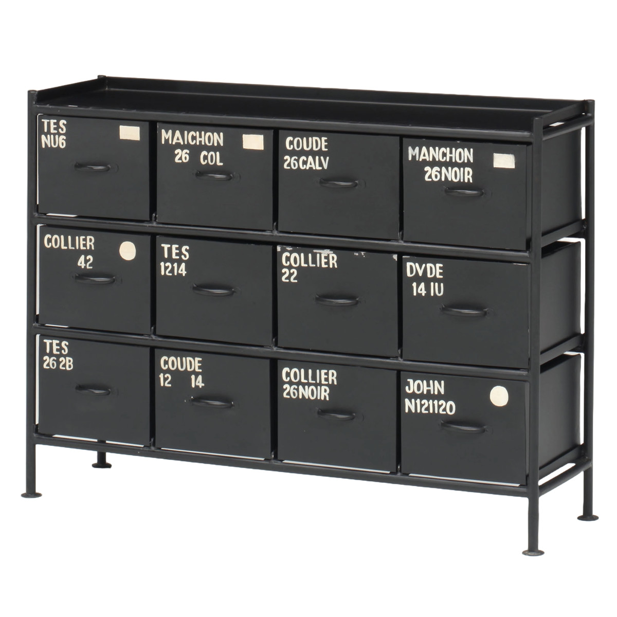 スチールチェスト 横型 幅111cm 引出し12杯 インダストリアル 完成品 ( チェスト スチール 引き出し 12杯 横 棚 ラック 飾り棚 ブラック グレー ベージュ ) 【ブラック】