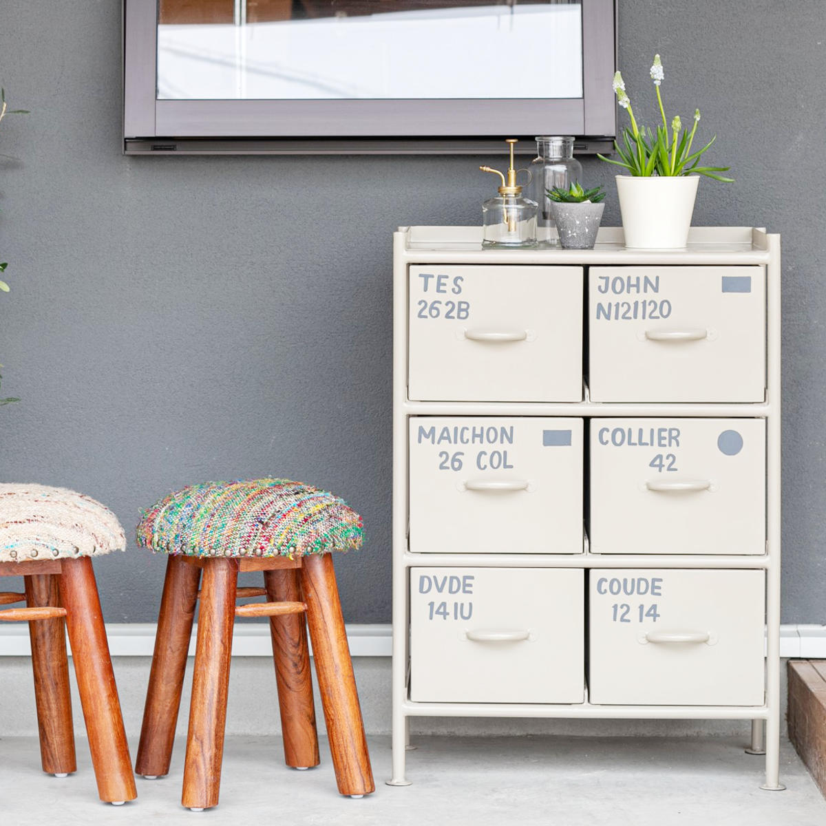引出しのナンバーペイントは、手作業で仕上げられています。遊び心のあるアクセントで、空間に温かな雰囲気をプラスしてくれます。