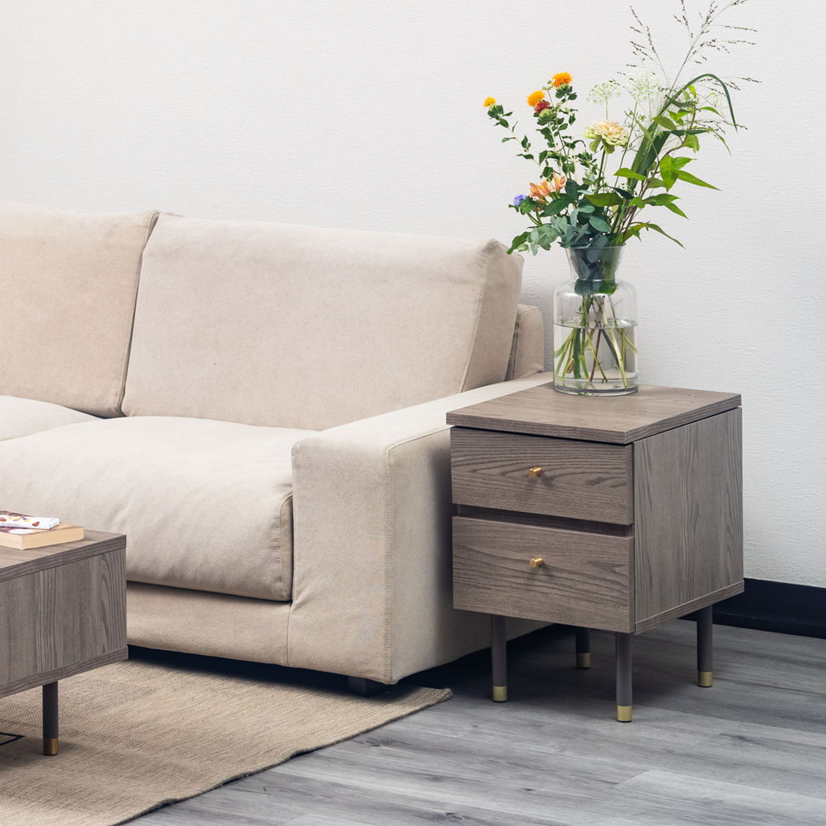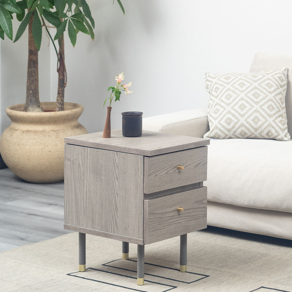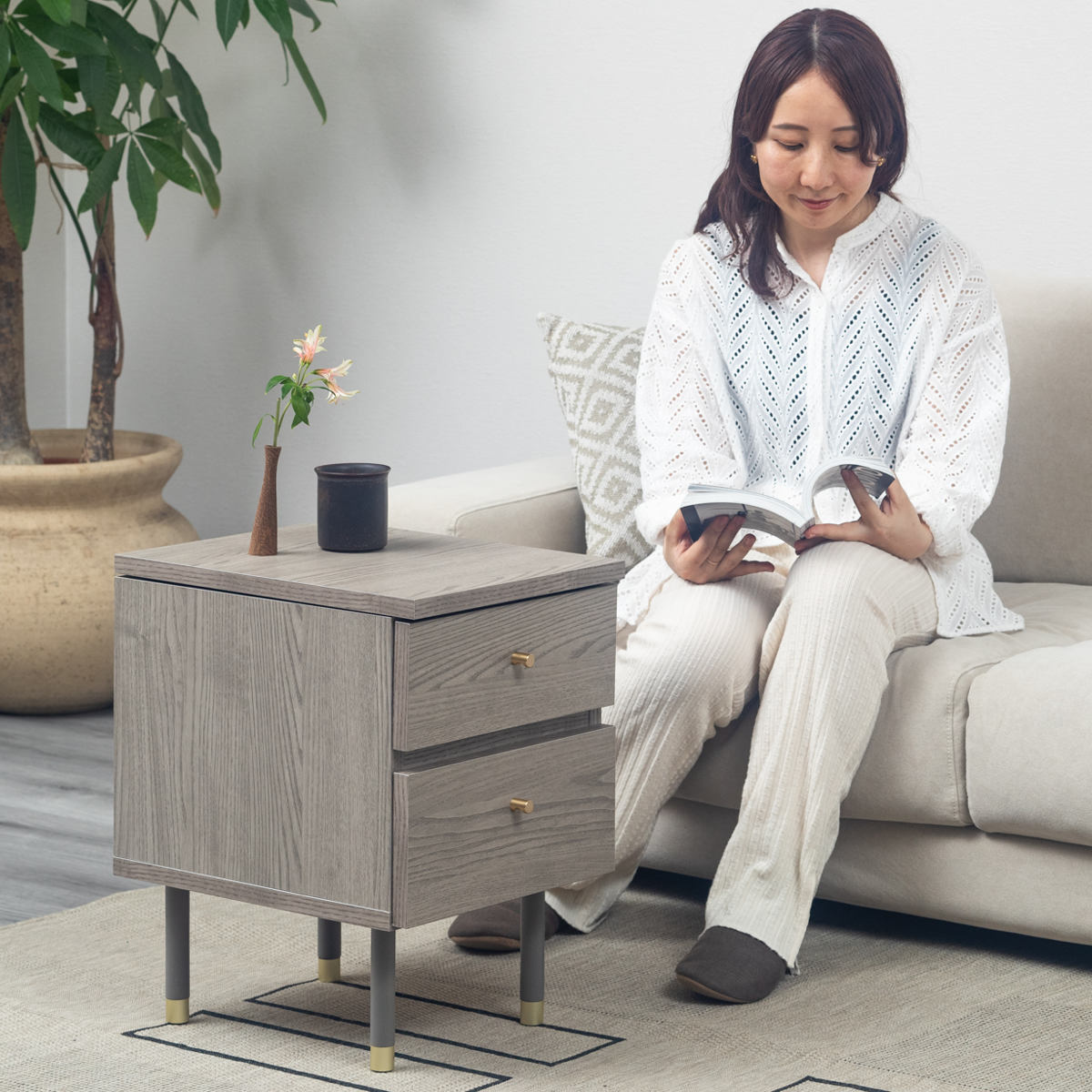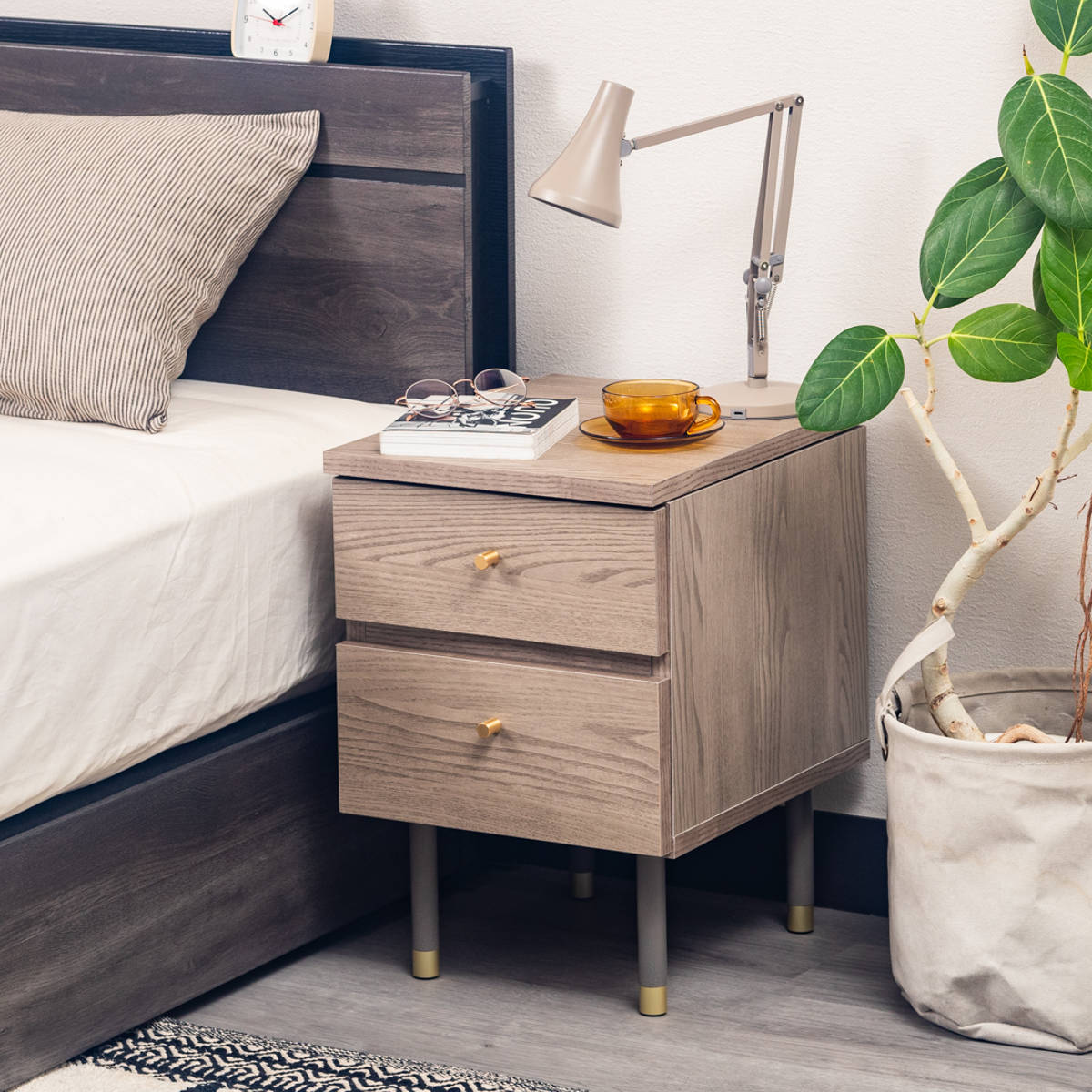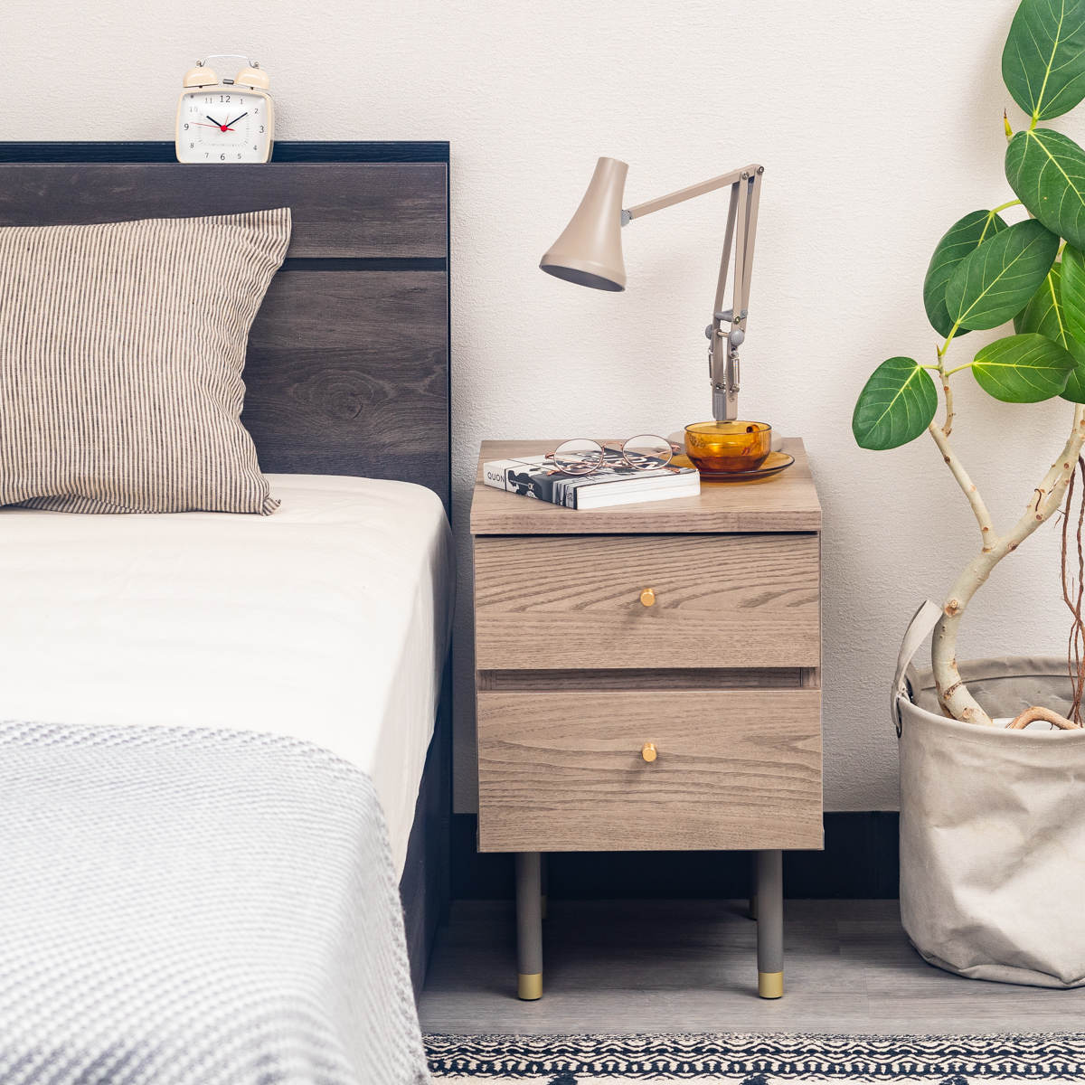 幅45cmとコンパクトなサイズなので、ベッドやソファサイド、ワンルームなど限られたスペースにもすっきりと置くことができます。