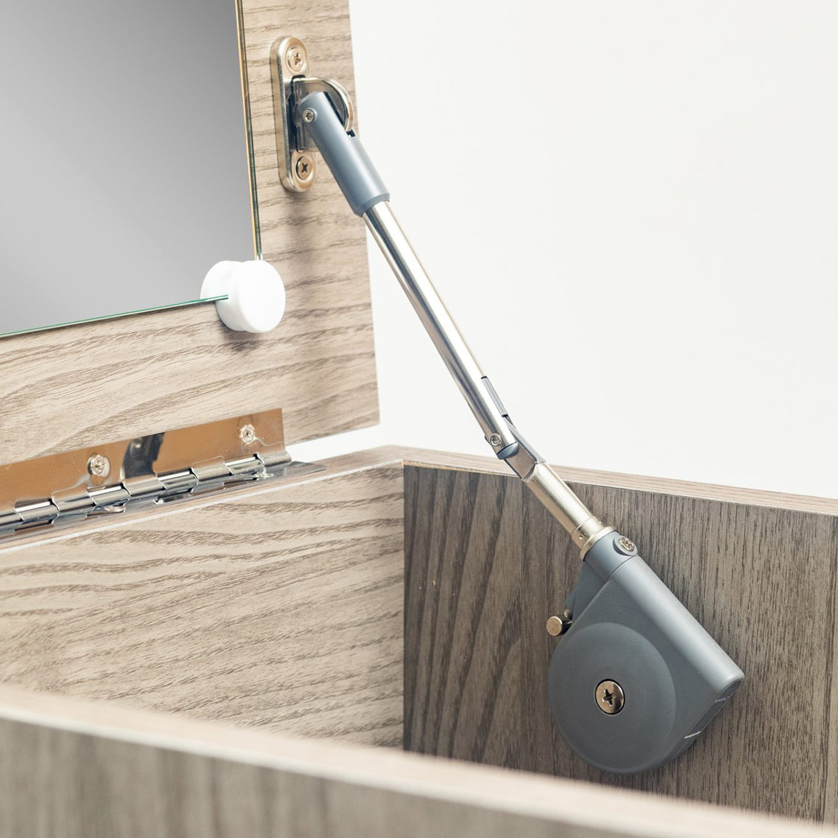 ミラー付き天板はゆっくり閉じるので安心です。