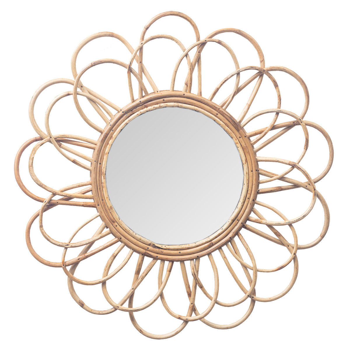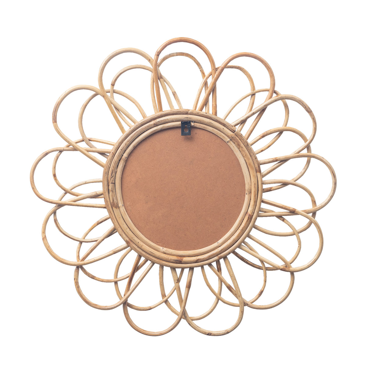ウォールミラー ラタン 57cm ペタル ( ミラー 壁掛け 鏡 円形 花 インテリアミラー 籐 かがみ フック付 天然素材 韓国風 完成品 )